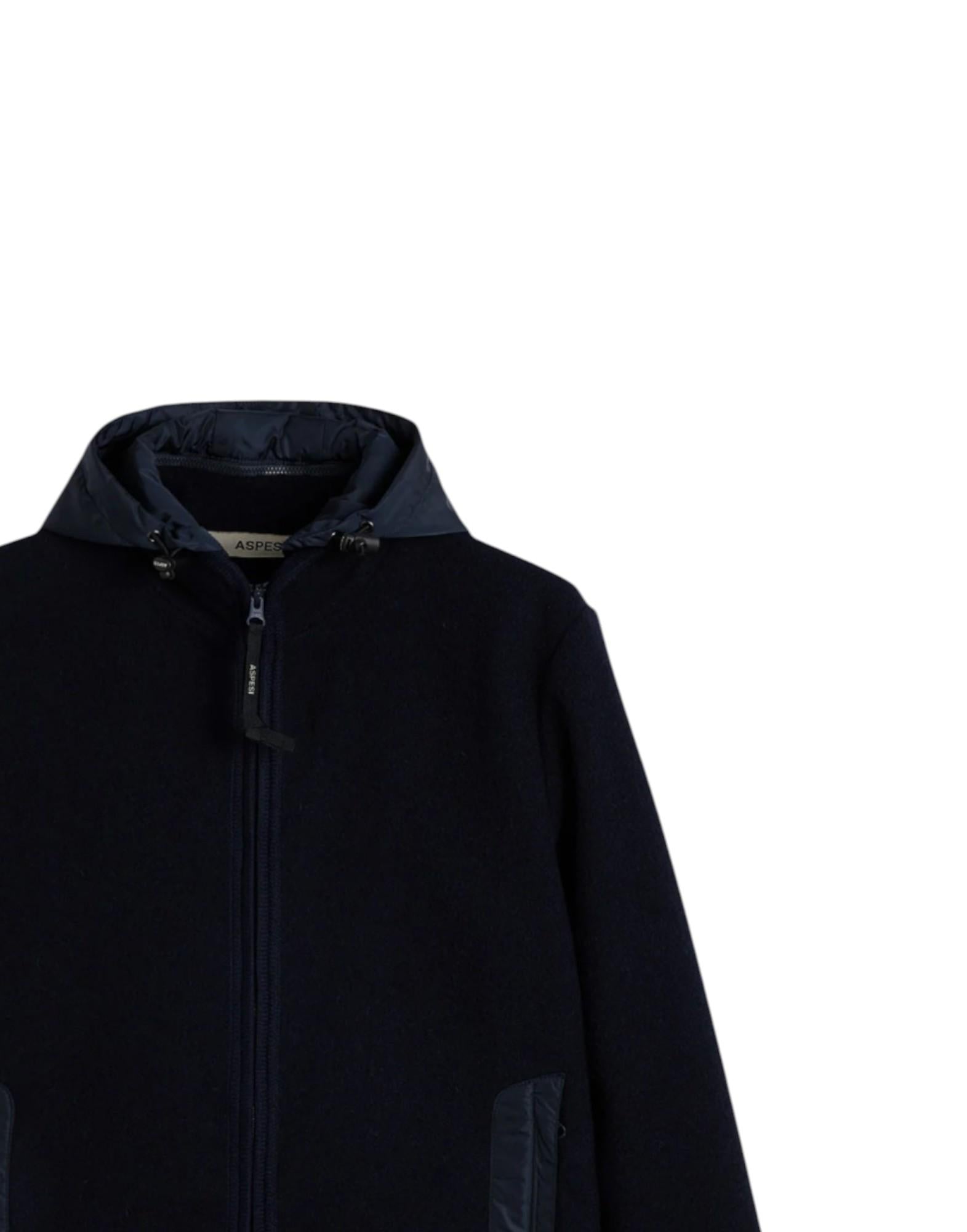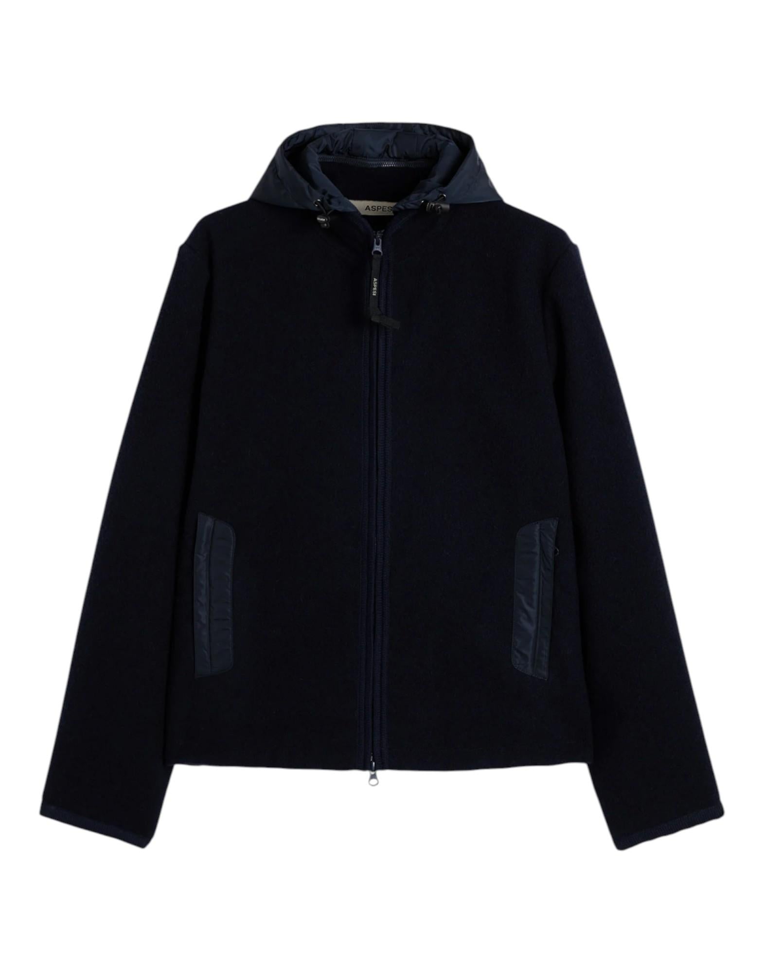 Giubbotto essenziale e raffinato, realizzato in pura lana Shetland per offrire calore e comfort. La parte anteriore e le maniche sono foderate in nylon per maggiore praticità, mentre il collo in piedi e i dettagli in maglia donano funzionalità e stile. Il cappuccio regolabile, rimovibile tramite zip, e la coulisse al fondo consentono una vestibilità personalizzata. La chiusura frontale a doppio cursore è rifinita dal tirazip logato Aspesi. Vestibilità asciutta.