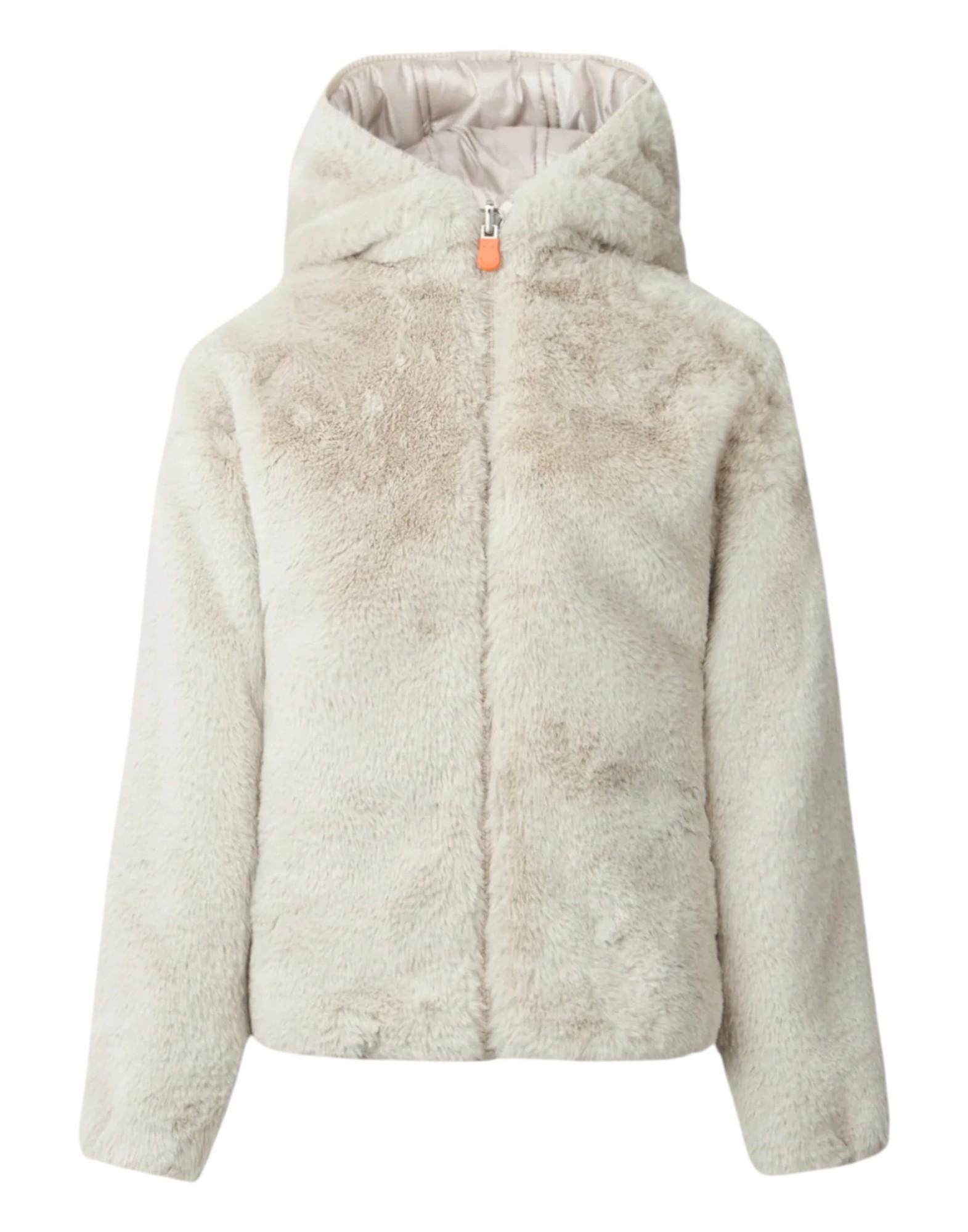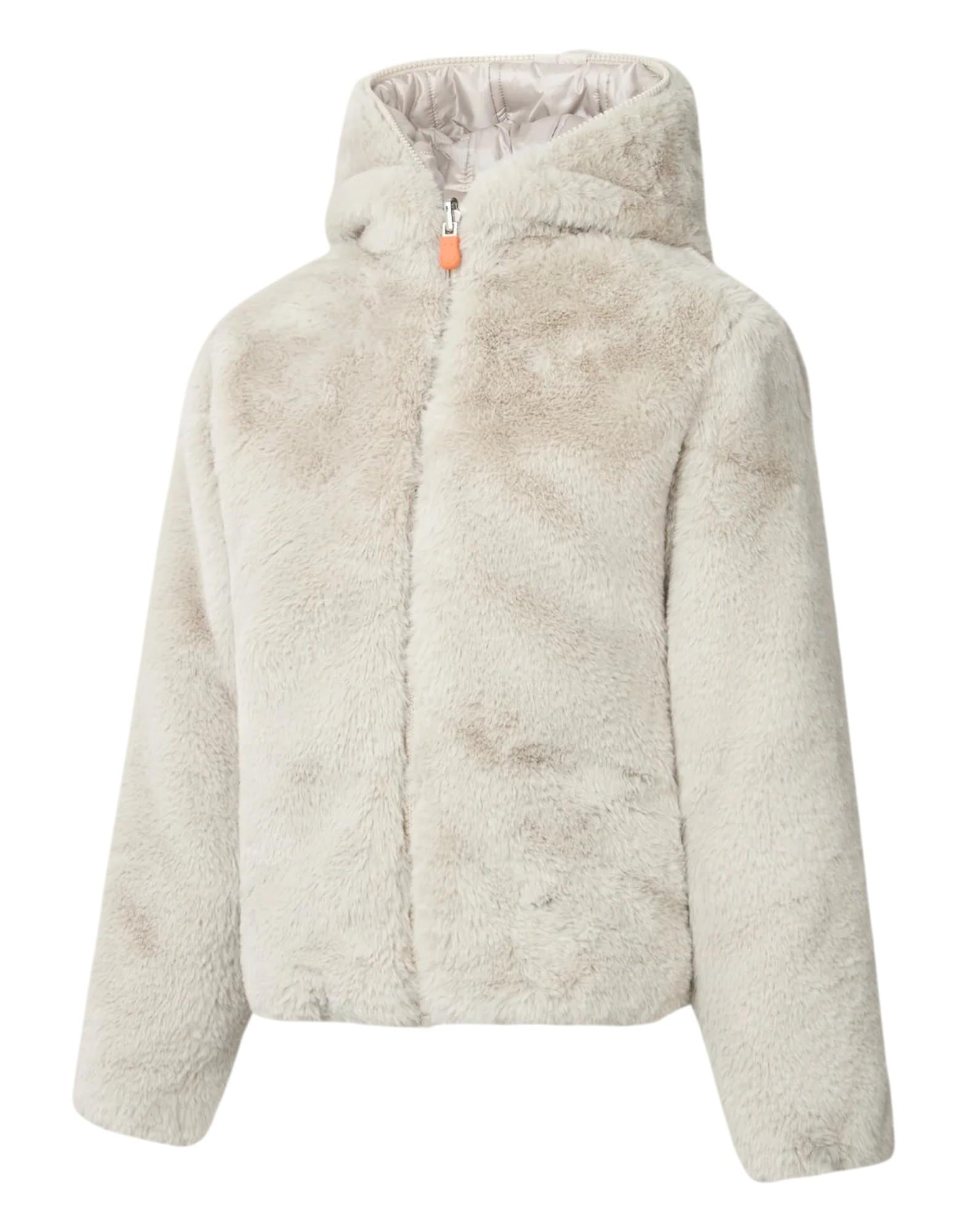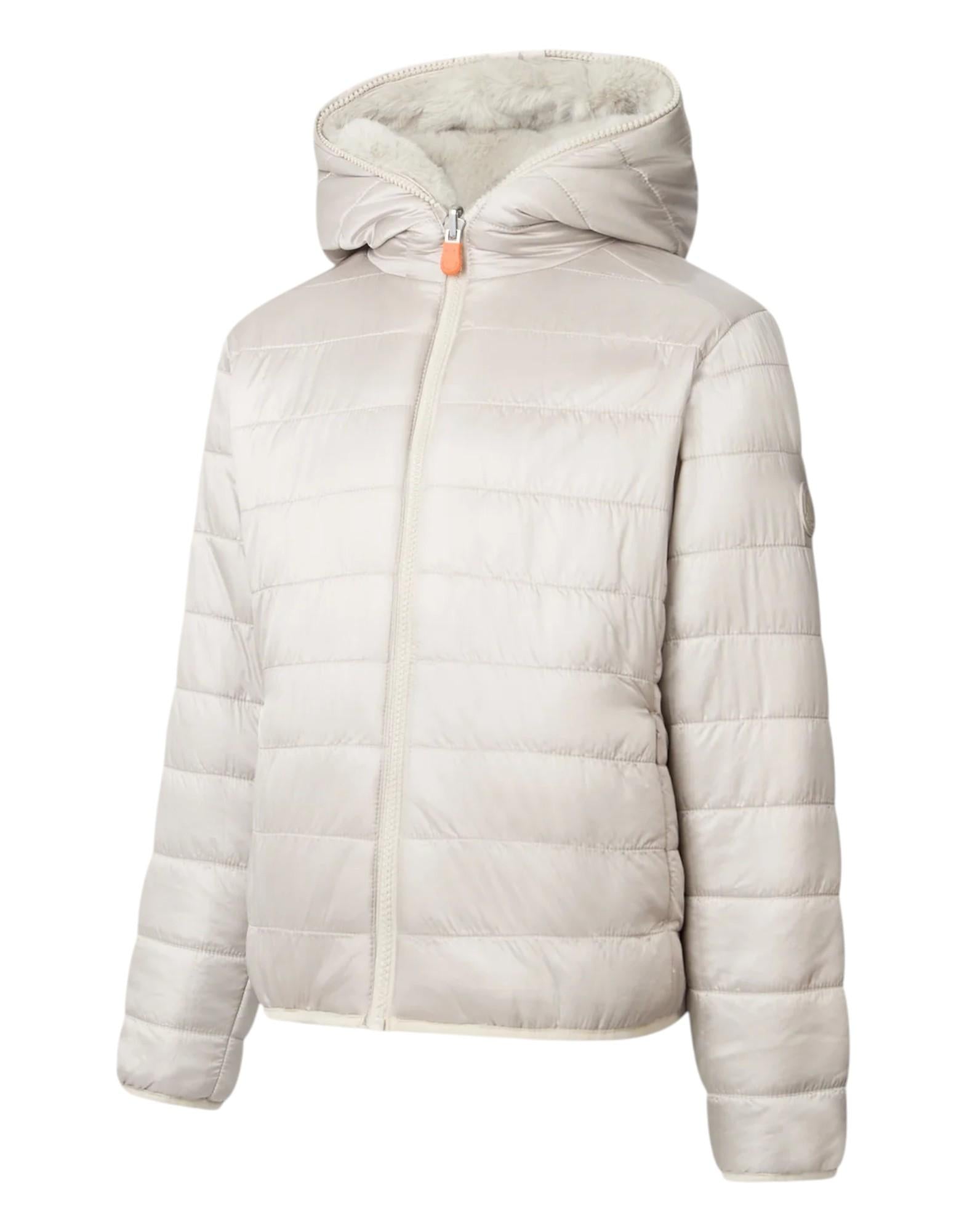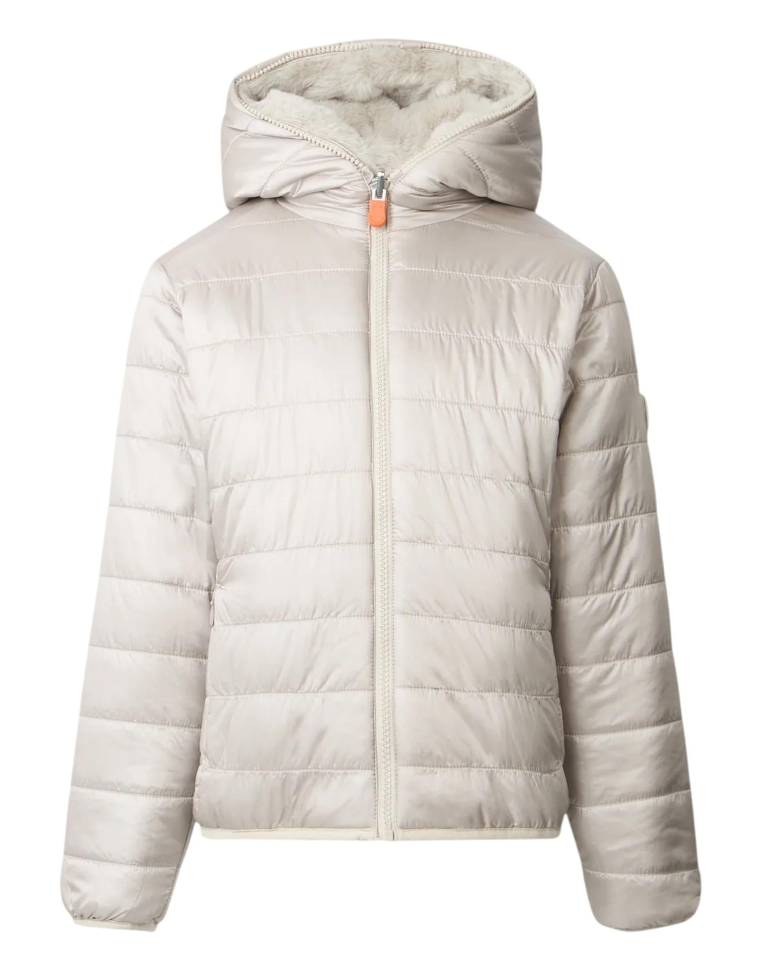 La giacca bambina Chloe è un capo reversibile che offre due look in uno: un lato con trapunta orizzontale e un lato in morbida pelliccia sintetica realizzata in poliestere riciclato. Perfetta per accompagnare le più piccole nelle giornate fredde, unisce comfort, calore e stile nel pieno rispetto dell'ambiente. Il design include un comodo cappuccio, tasche basse e finiture in Lycra su fondo e polsi per una vestibilità confortevole. I dettagli distintivi Save The Duck, come il logo rotondo sulla manica e il tirazip arancione personalizzato, completano il capo con un tocco iconico.