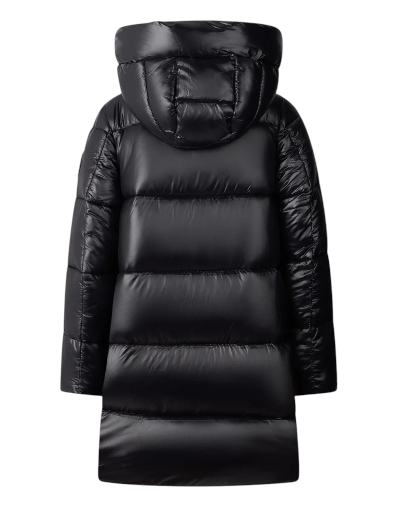 Pensato per accompagnare le piccole Duckers nelle giornate più fredde, il piumino Millie si distingue per la linea lunga ad A e il maxi cappuccio che offre calore e protezione. Realizzato in nylon riciclato dalla finitura lucente laqué, combina stile e sostenibilità. Completano il design le tasche laterali con zip, il logo rotondo sulla manica e il tirazip arancione personalizzato, segni distintivi dell'inconfondibile stile Save The Duck.