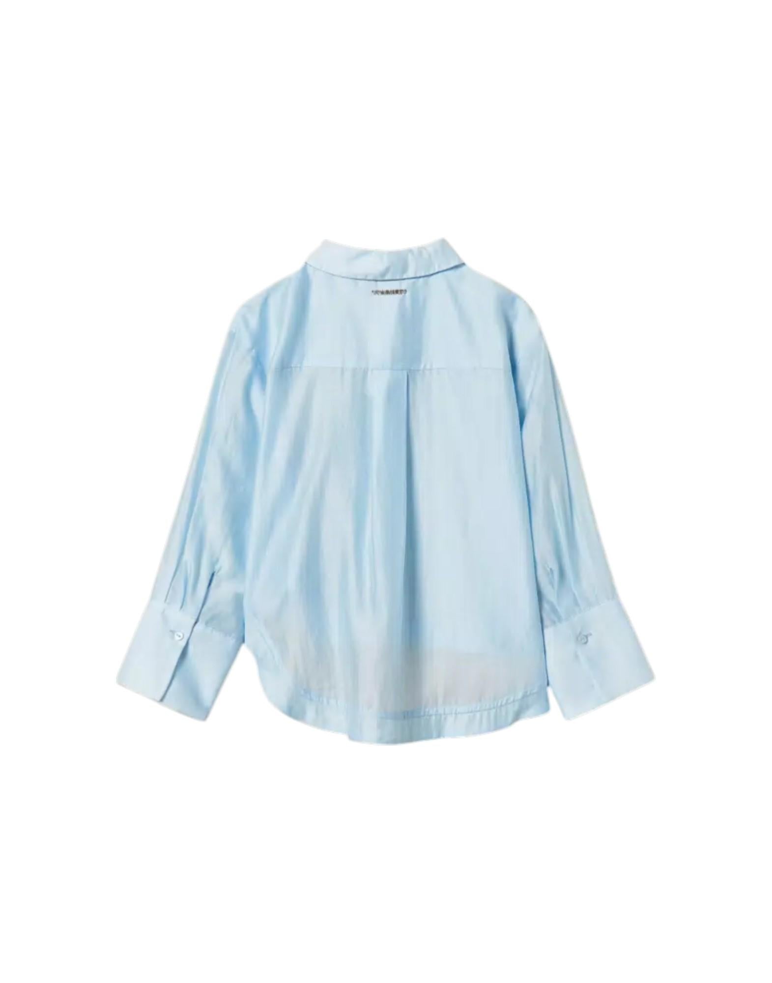 Camicia da bambina realizzata in leggero voile di lyocell, caratterizzata da una linea over che dona al capo un look moderno e confortevole. Il modello è arricchito da un delicato dettaglio di arricciatura sul davanti che aggiunge movimento e raffinatezza al design.