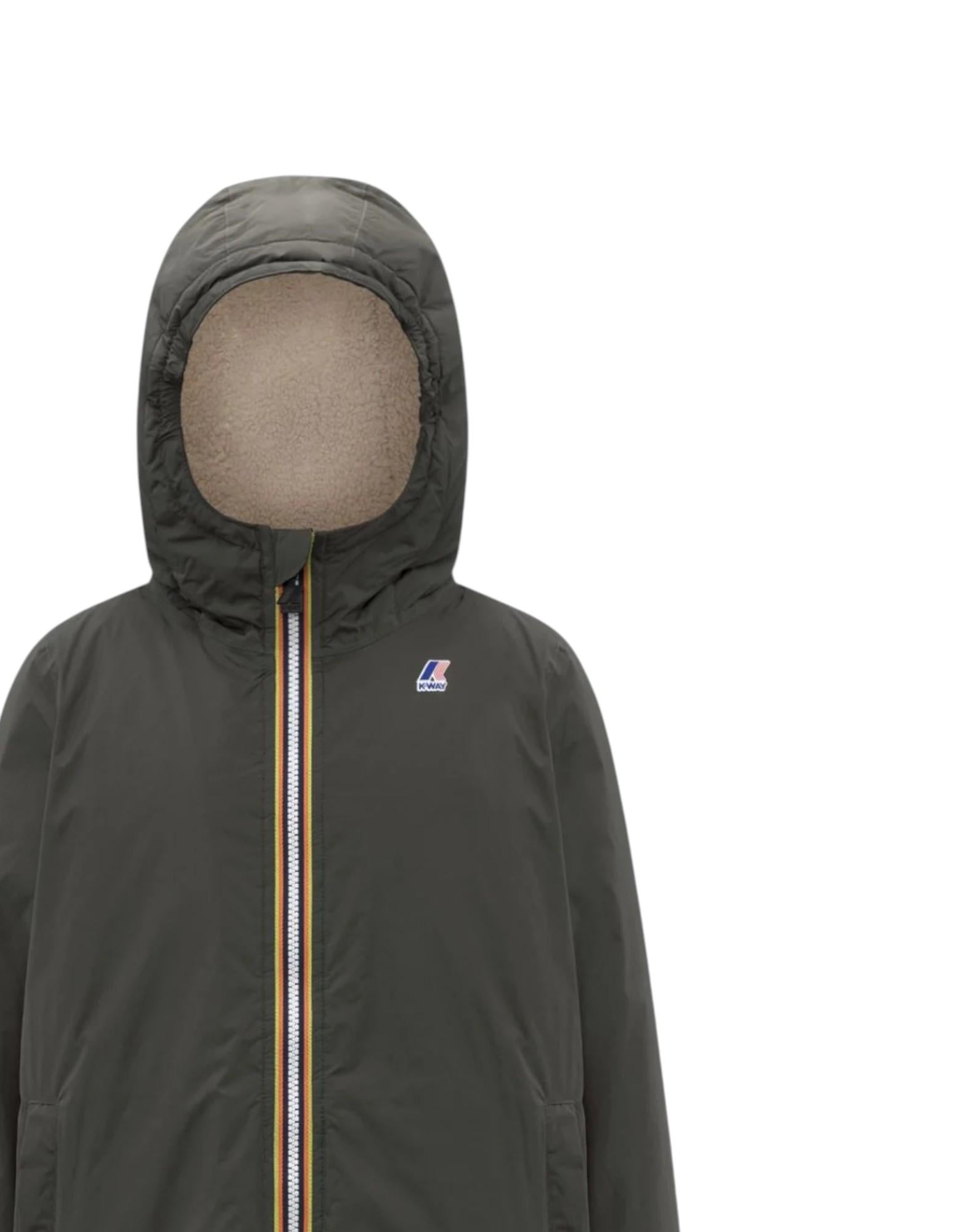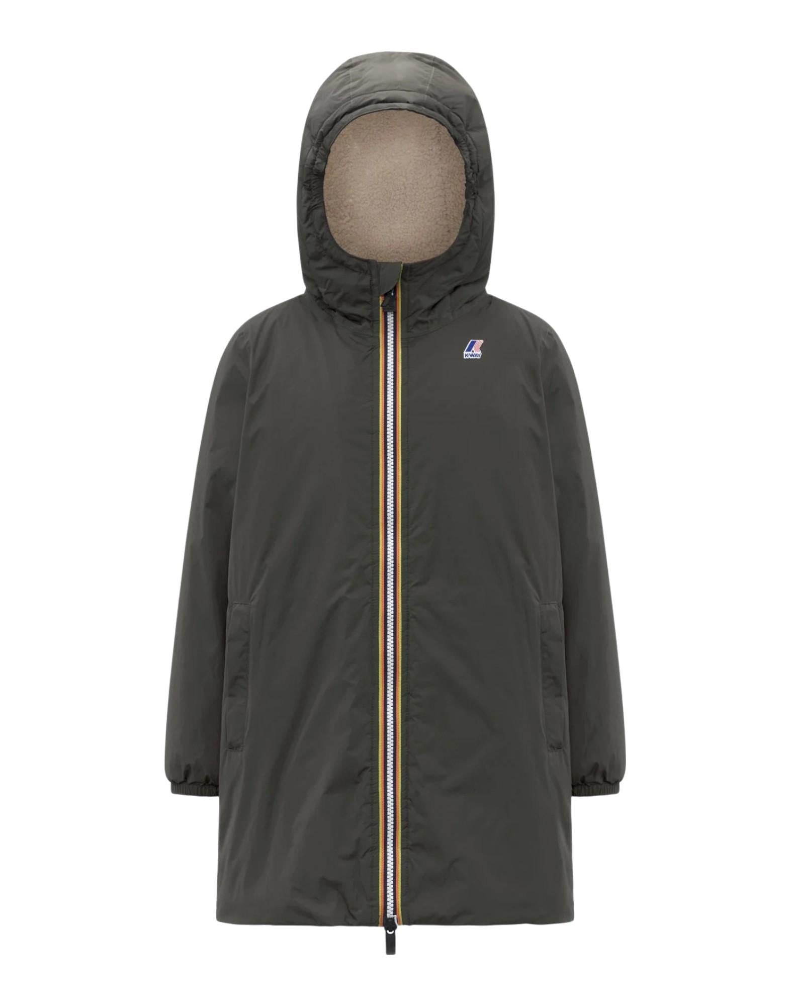 K-WAY - Giacca Bambino P. LE VRAI 4.0 EIFFEL ORSETTO in Nylon Ripstop Verde Nerastro / Regular Fit