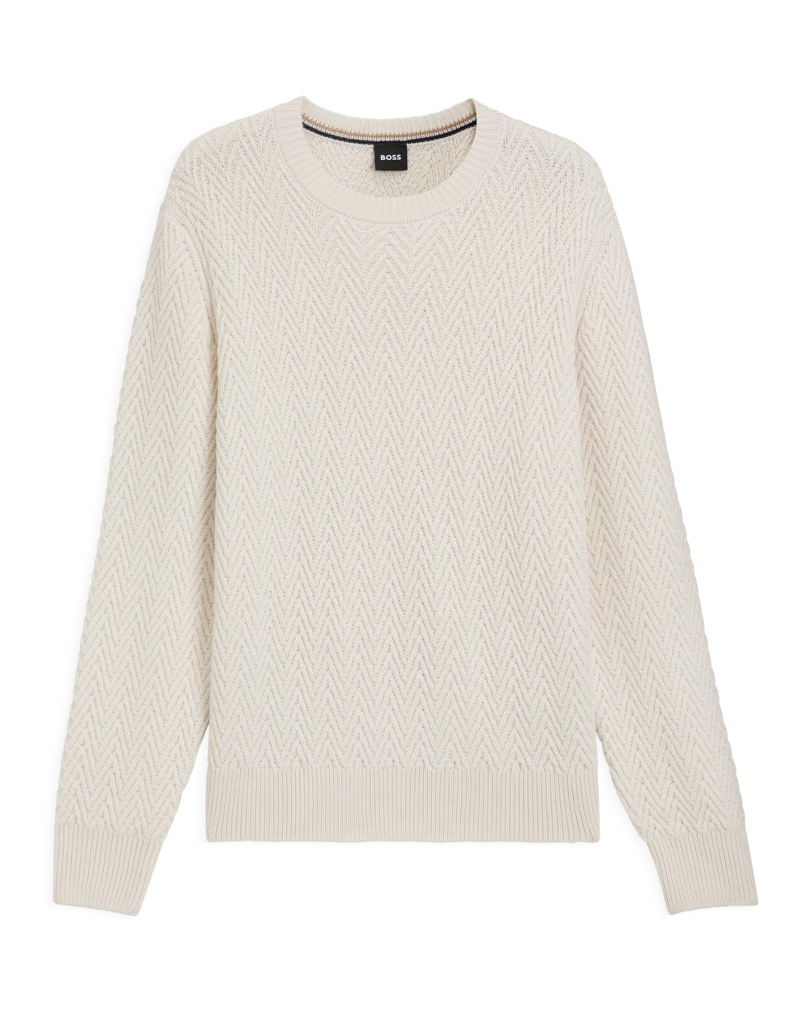 Maglione elegante e confortevole, realizzato in lana vergine di alta qualità con struttura a spina di pesce. La vestibilità regular fit e il design classico con girocollo e polsini a costine lo rendono un capo versatile e senza tempo. Prodotto con almeno il 60% di lana proveniente da agricoltura rigenerativa, che promuove la tutela degli ecosistemi naturali e la biodiversità.