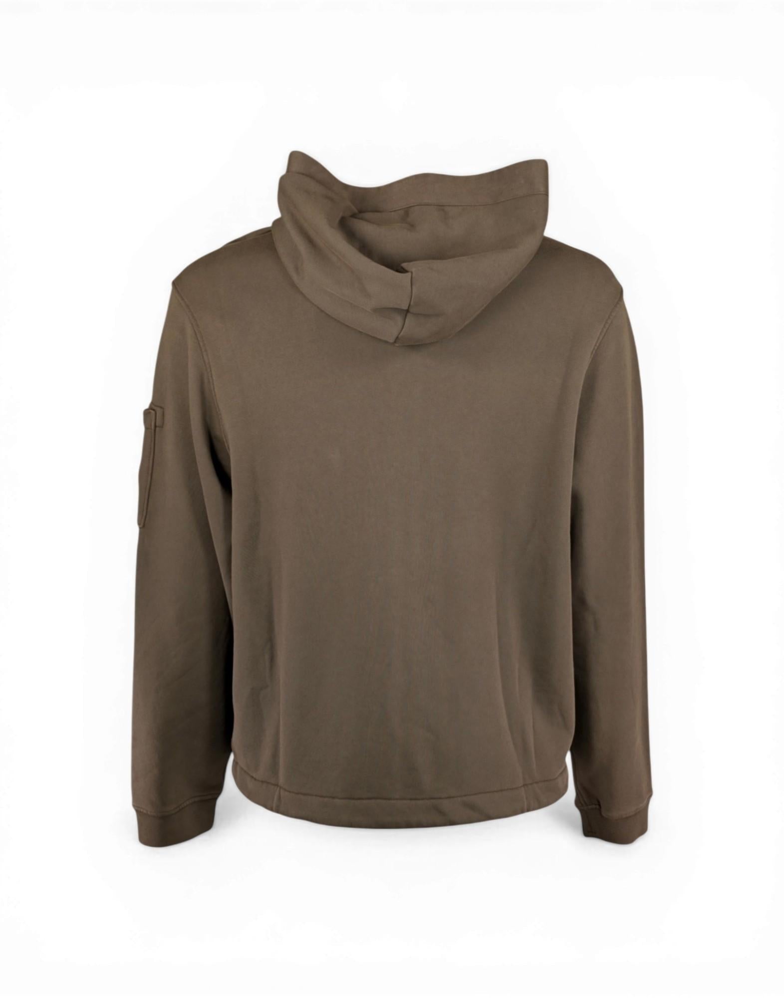 Felpa realizzata in cotone, caratterizzata da una costruzione funzionale e contemporanea. Il design con cappuccio e chiusura frontale con zip è pensato per garantire praticità e comfort, mentre il dettaglio distintivo applicato sulla manica richiama l'identità del brand.