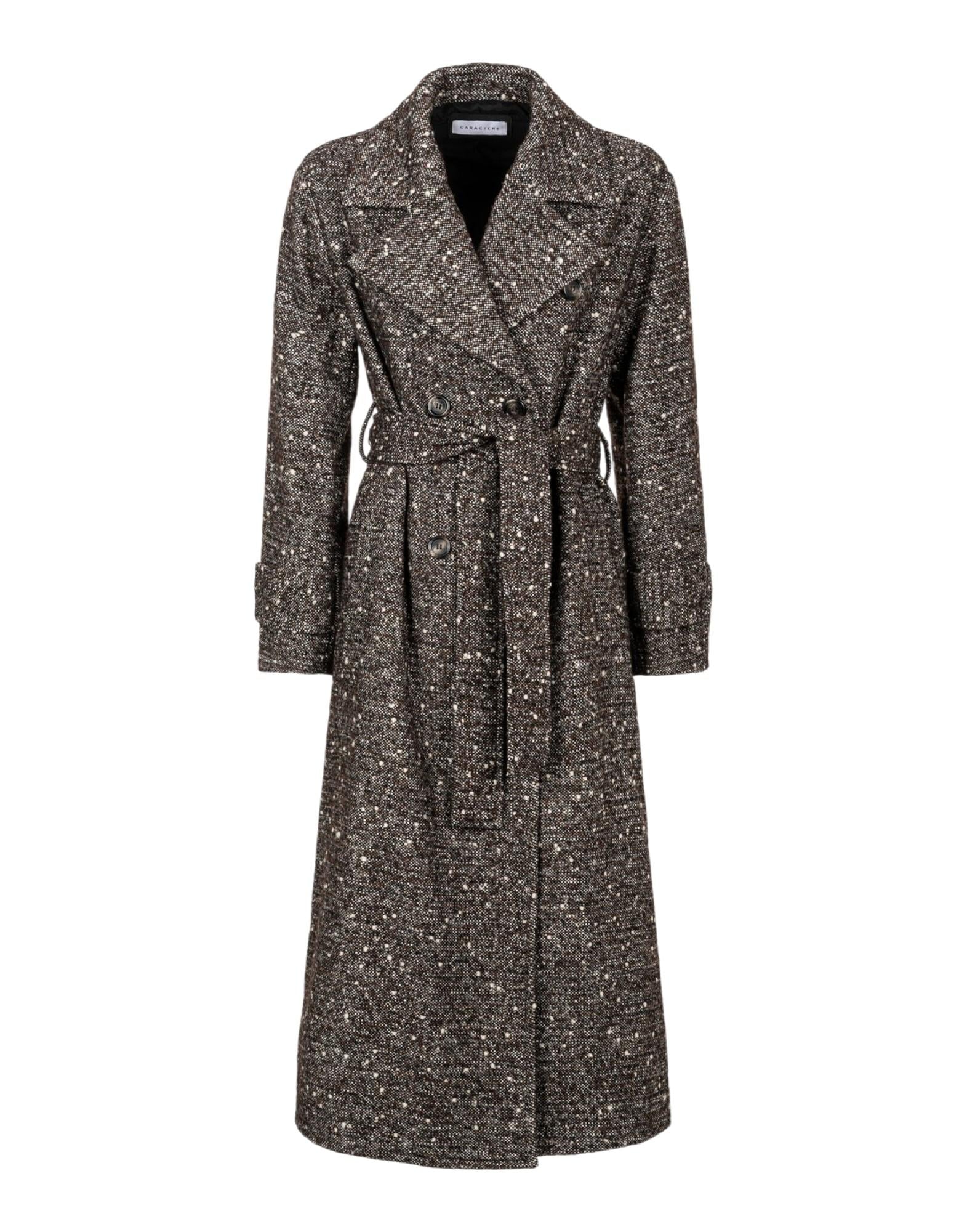 Cappotto lungo con chiusura frontale a bottoni e cintura coordinata in vita, pensato per un'eleganza essenziale e femminile. La silhouette strutturata è valorizzata dal tessuto misto lana, morbido e resistente, che garantisce comfort e calore nelle giornate più fredde. Un capo versatile e sofisticato, ideale per look quotidiani o occasioni formali.