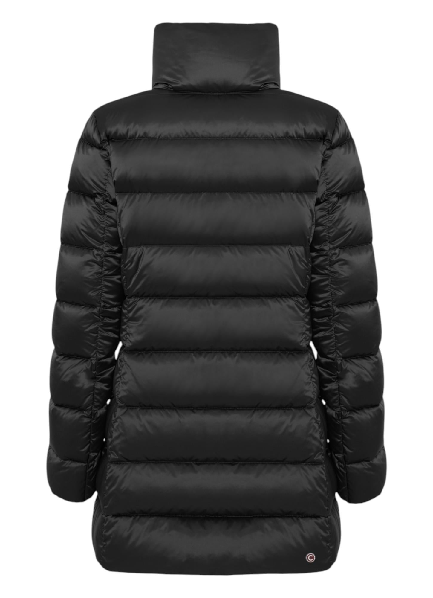 Piumino dalla linea elegante e femminile, ideale per affrontare l'inverno con stile e comfort. Le cuciture frontali definiscono la vita e modellano la silhouette, mentre il collo imbottito e le tasche laterali offrono praticità. La chiusura con zip e bottoni assicura protezione nelle giornate più fredde.