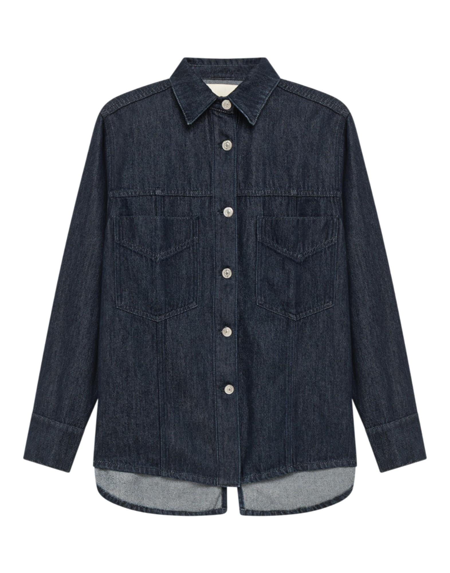 Camicia donna firmata Roy Roger's realizzata in denim leggero con lavaggio scuro rinse. Il modello Valery presenta un design essenziale e contemporaneo con colletto classico, chiusura frontale con bottoni logati e maniche lunghe con polsini abbottonati. Le tasche piatte sul petto e il fondo stondato aggiungono praticità e stile, mentre la label Roy Roger's applicata sul retro firma il capo con un tocco autentico. La vestibilità regular e il tessuto morbido in cotone e lyocell garantiscono comfort e versatilità in ogni occasione.