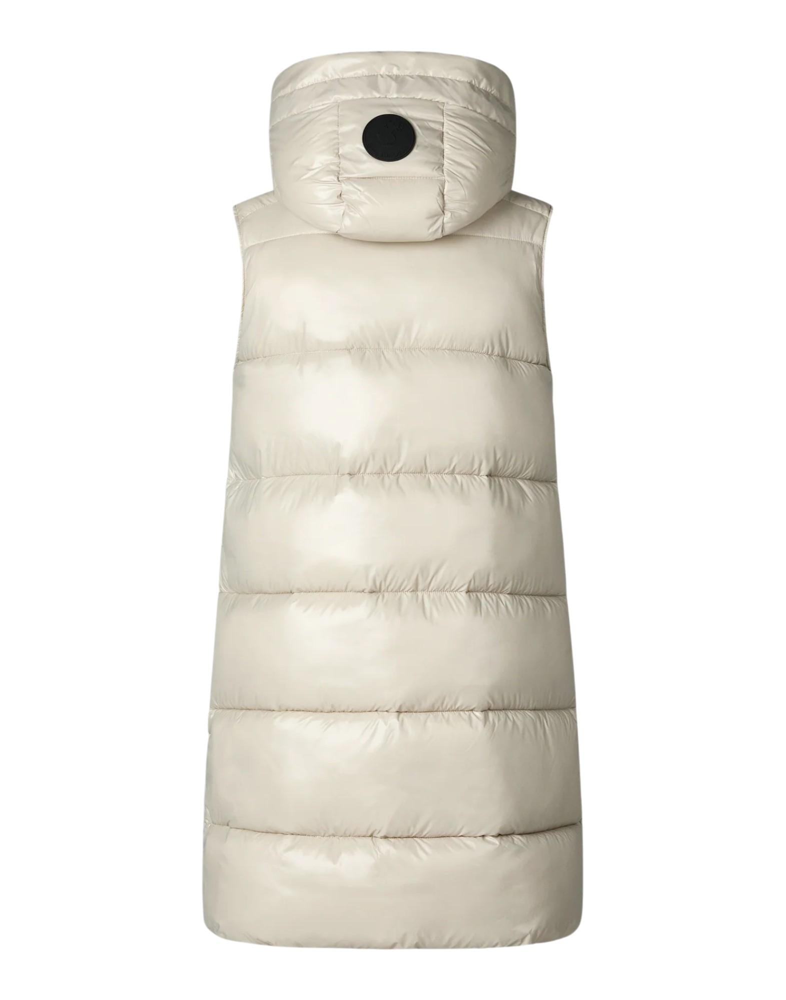 Il gilet Iria è la scelta ideale per affrontare la mezza stagione con stile e funzionalità. Realizzato in nylon leggero e compatto dalla mano morbida e rotonda, offre ottime performance antivento e una piacevole finitura lucente. La trapuntatura orizzontale e la linea lunga ad A slanciano la silhouette, mentre il cappuccio ampio regolabile con nastro grosgrain garantisce protezione da vento e umidità. Rifinito con tirazip personalizzato e logo nero applicato sul fondo, è un capo versatile e contemporaneo che unisce estetica e praticità in perfetto stile Save The Duck.