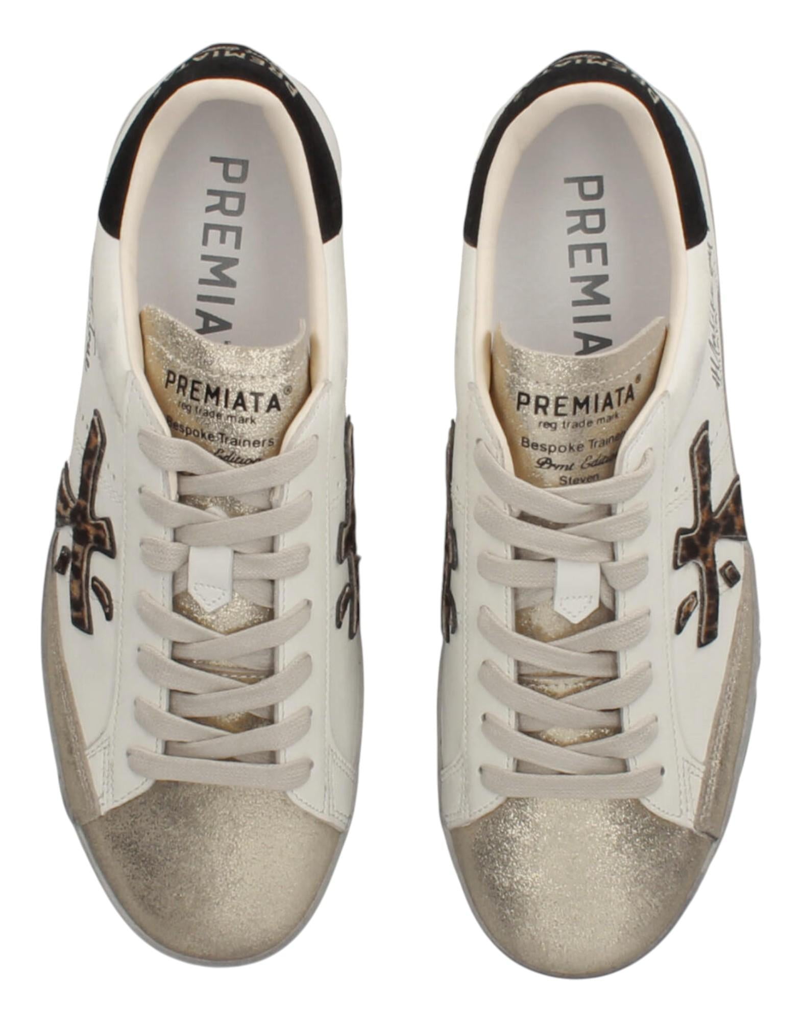 Premiata - Sneaker Donna STEVEND VAR 7605 - Pelle - Off White/Gold