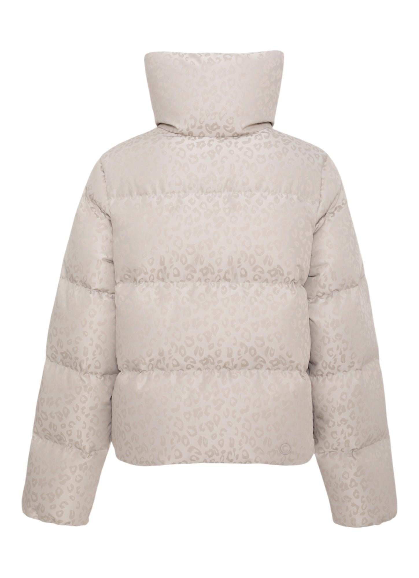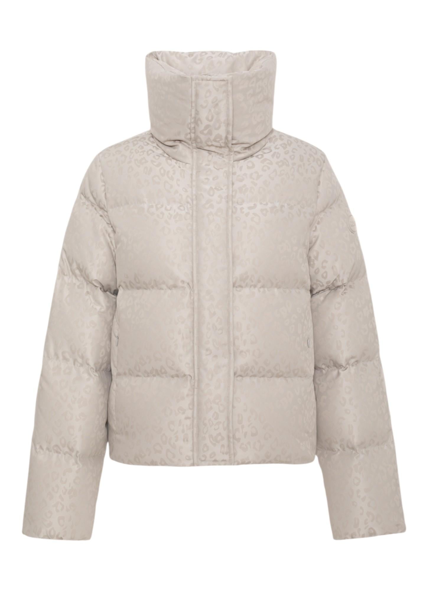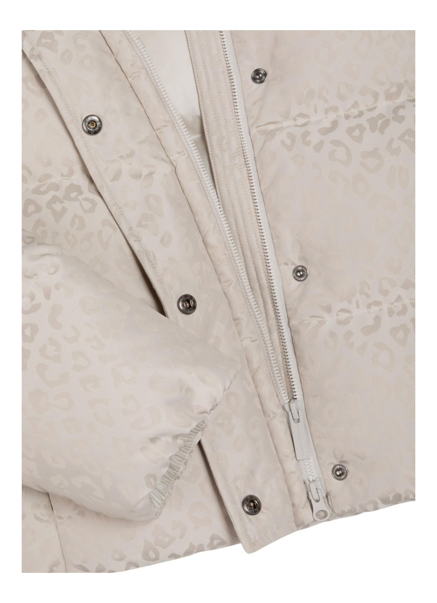 Giacca imbottita dal carattere deciso, definita dal motivo all over animalier con finiture alternate lucide e opache. Il collo alto e ampio assicura protezione dal freddo quando chiuso e un look più morbido e rilassato quando rovesciato. Le tasche laterali completano un design distintivo, capace di unire comfort e stile.