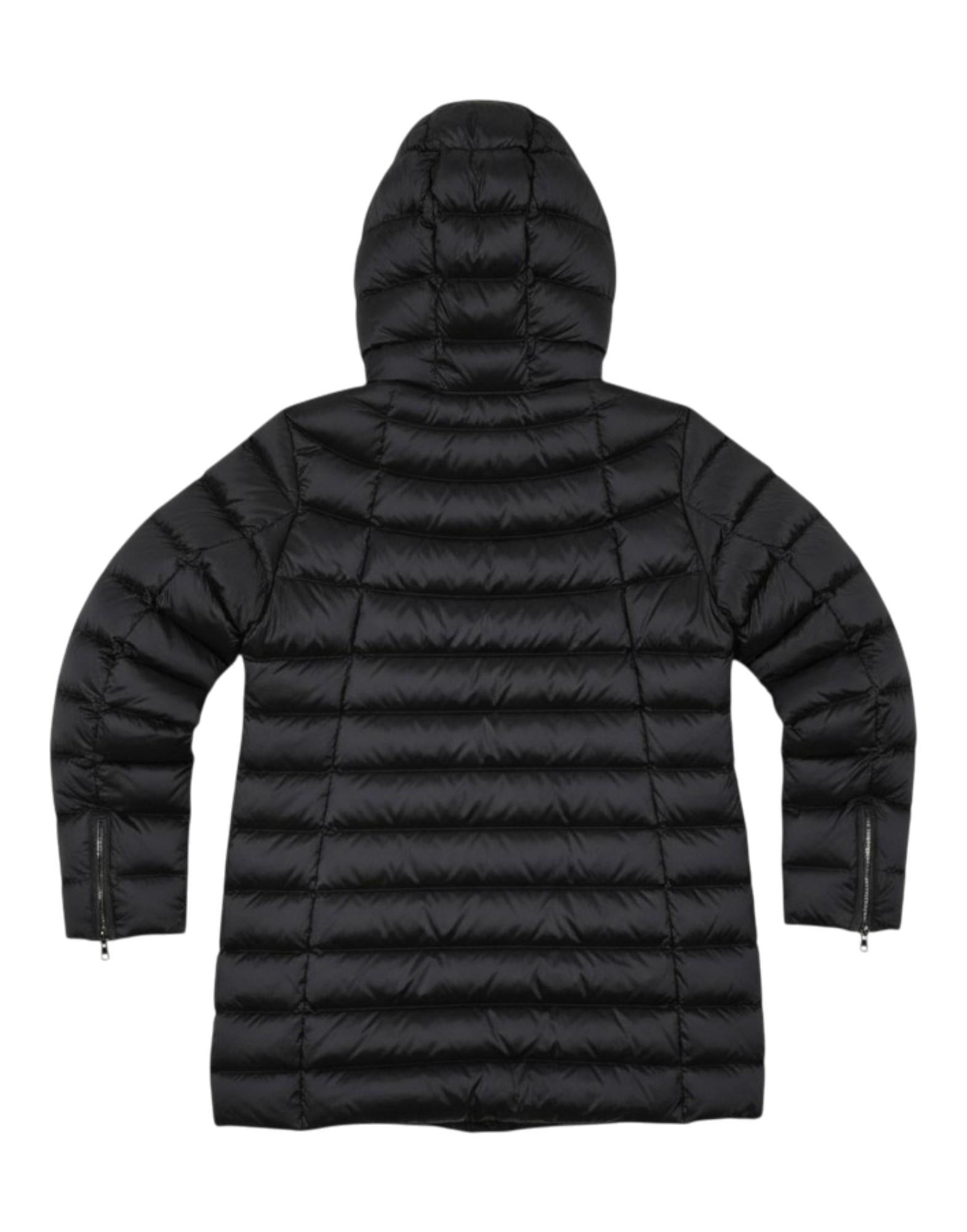 La linea leggermente scampanata sul fondo dona un tocco femminile, mentre il cappuccio fisso con bordo in vera pelliccia staccabile e coulisse regolabile offre ulteriore comfort e praticità.