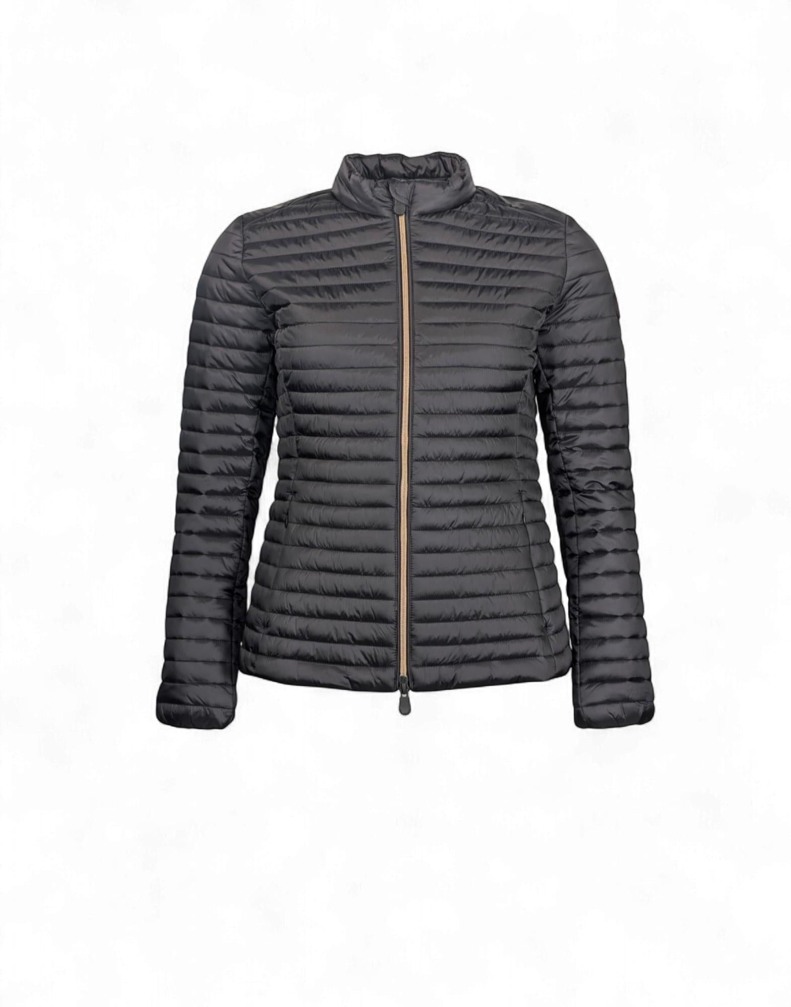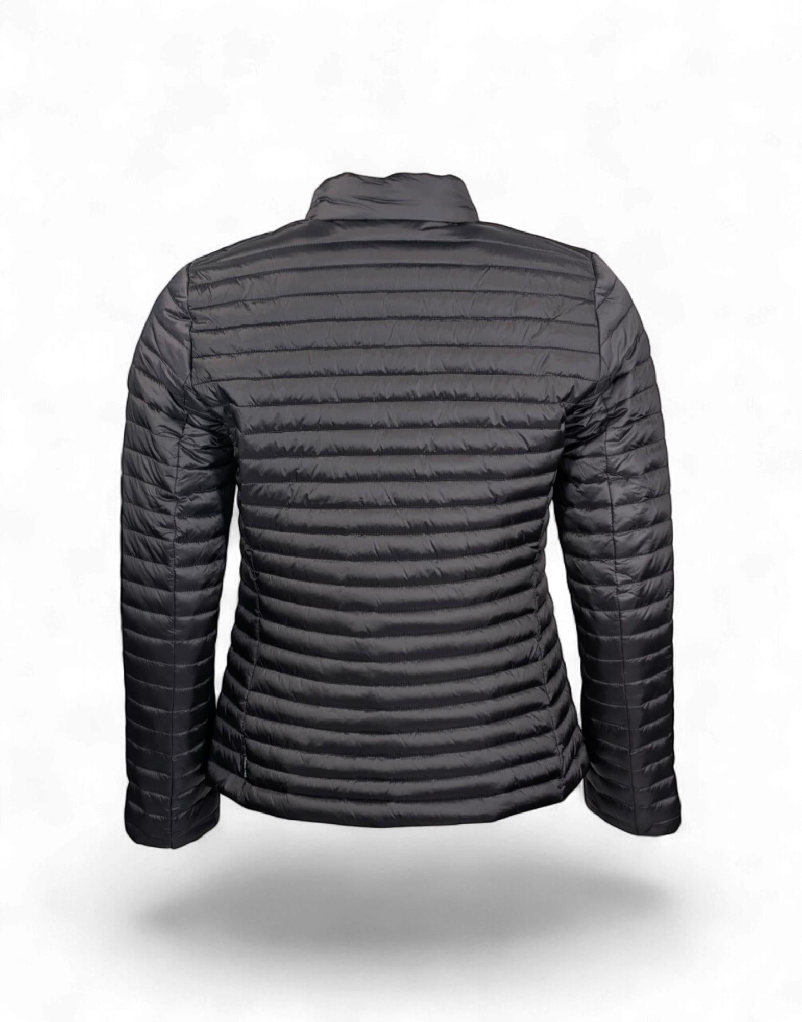 Giubbotto da donna dal design essenziale e contemporaneo, caratterizzato da una trapuntatura orizzontale che valorizza la silhouette con una linea pulita e femminile. Ideale per le mezze stagioni, unisce leggerezza e funzionalità in un capo versatile.