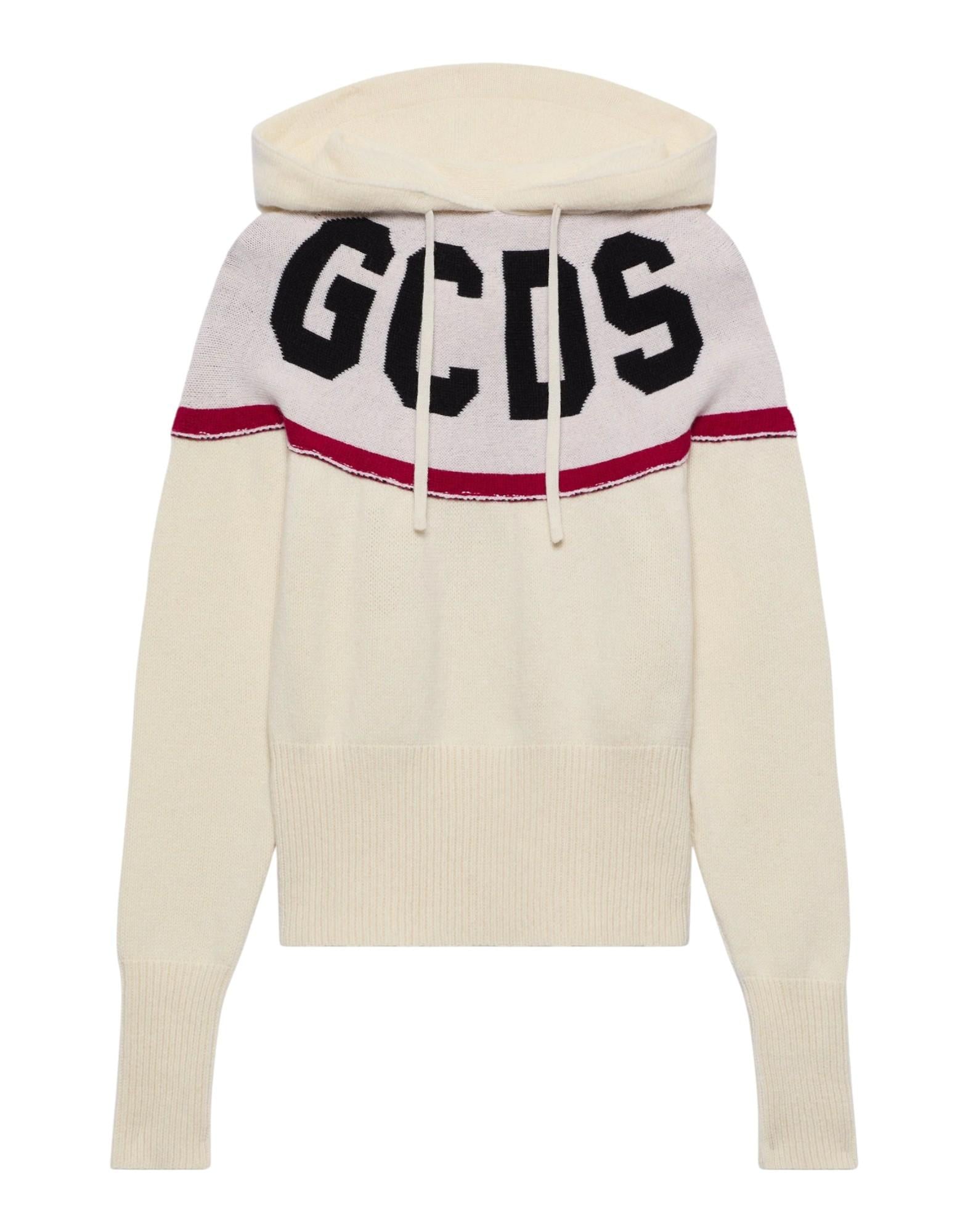 GCDS - Felpa corta con cappuccio in maglia con logo - Lana riciclata e poliammide