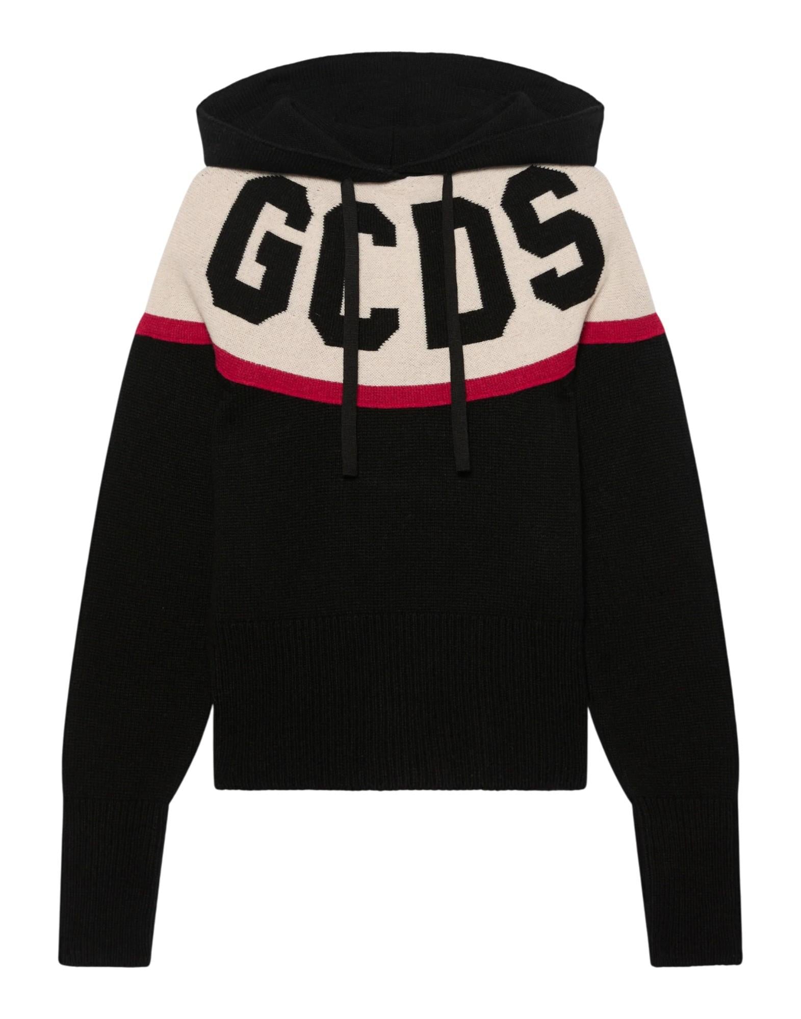La felpa corta con cappuccio in maglia firmata GCDS unisce stile urbano e comfort in un capo dallo spirito deciso. Realizzata in filato di lana e lana riciclata, presenta una struttura compatta che assicura calore e morbidezza, ideale per la stagione fredda.