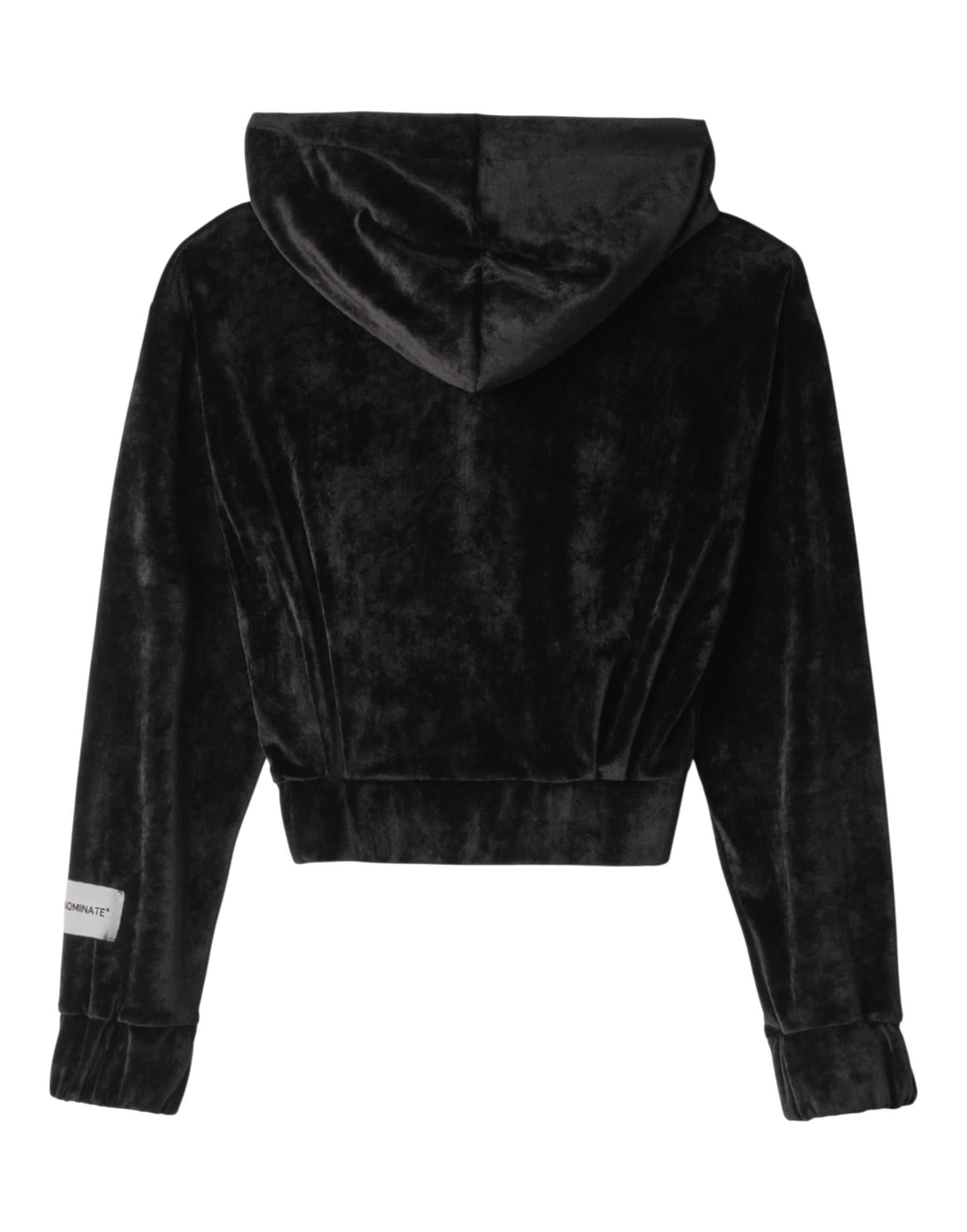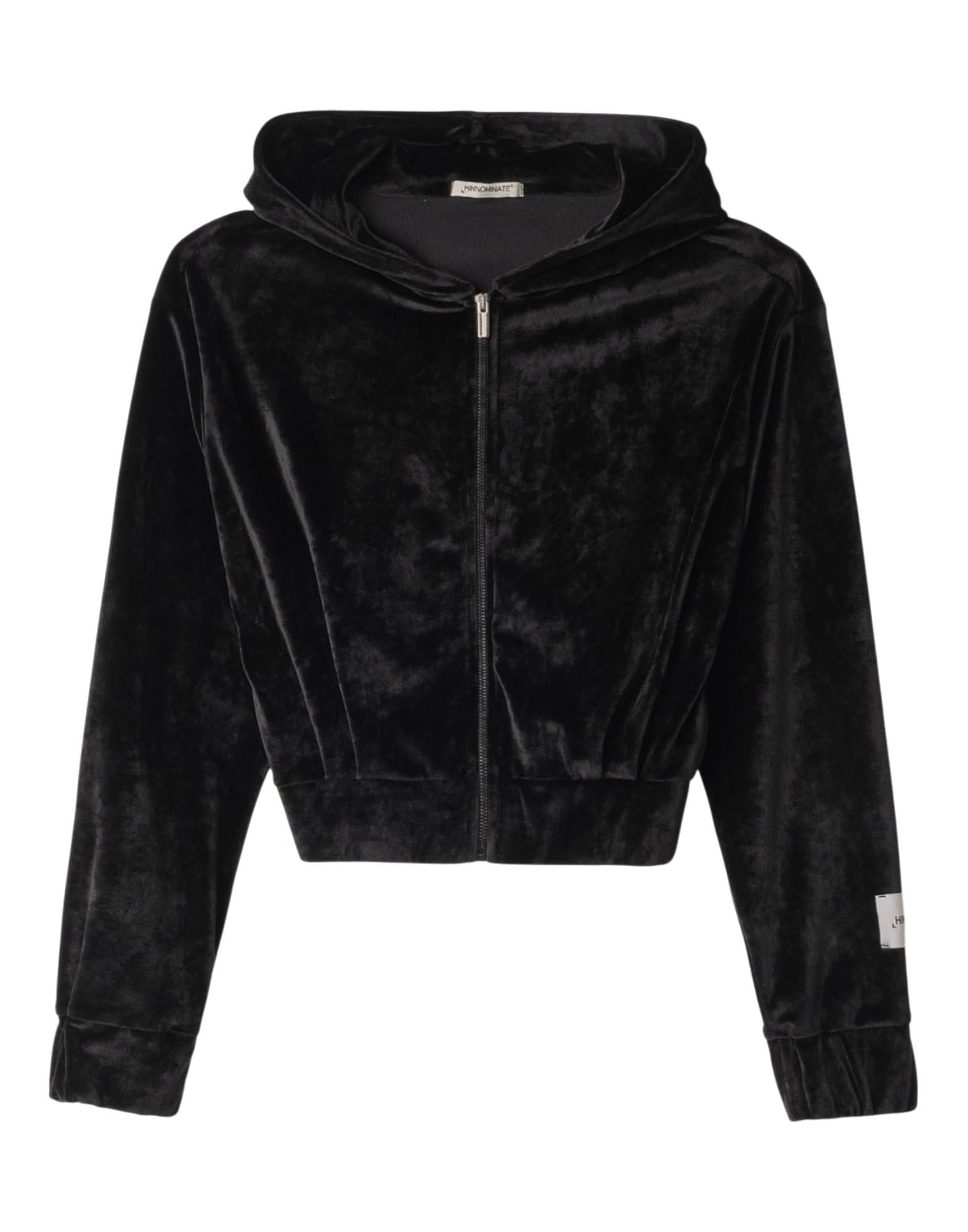 La giacca con cappuccio in ciniglia di Hinnominate combina morbidezza e femminilità in un capo dal design raffinato. Realizzata in ciniglia stretch dall'effetto luminoso e avvolgente, presenta pences alla balza che donano struttura e una silhouette leggermente svasata. Il cappuccio e la chiusura frontale completano un look casual-chic, perfetto per il tempo libero o per outfit coordinati con i pantaloni in ciniglia della collezione.