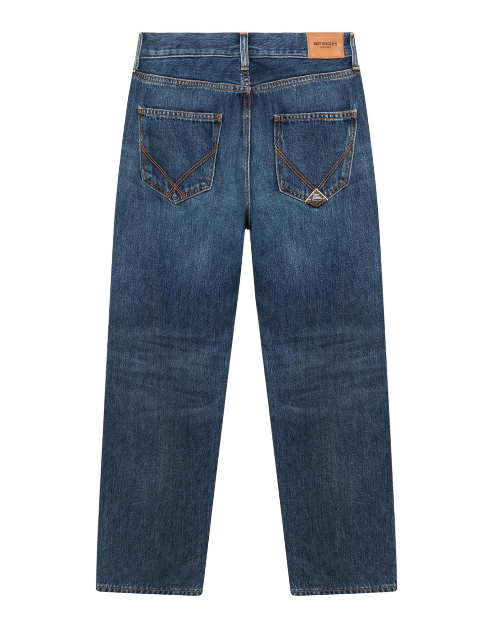 Jeans donna firmati Roy Roger's realizzati in denim morbido con lavaggio scuro e leggere baffature sul fronte per un effetto vissuto naturale. Il modello New Oskar presenta una vita media con passanti, chiusura con bottoni logati e salpa Roy Roger's applicata sul retro. Le due tasche sul fronte e le due sul retro con label del brand completano il design con dettagli autentici. Il taglio boyfriend, rilassato e versatile, dona un look contemporaneo e confortevole, perfetto per un'eleganza casual quotidiana.