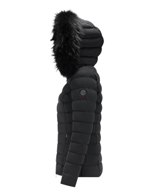 Piumino dal design moderno e funzionale, realizzato in tessuto elasticizzato opaco con trattamento idrorepellente e antispiumaggio. Imbottito in piuma naturale certificata JIS 90% fiocco con filling power 800 cuin, offre protezione dal freddo fino a -10°C mantenendo leggerezza e comfort. Il cappuccio staccabile con coulisse regolabile e bordo in murmasky removibile consente di personalizzare lo stile e il livello di protezione, mentre le tasche laterali con chiusura nascosta e la tasca interna portadocumenti garantiscono praticità quotidiana.