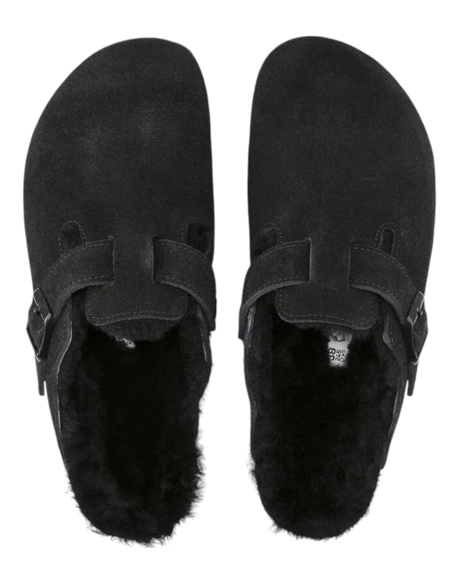 Birkenstock - Boston Shearling Black/Black Suede Pelle Scamosciata