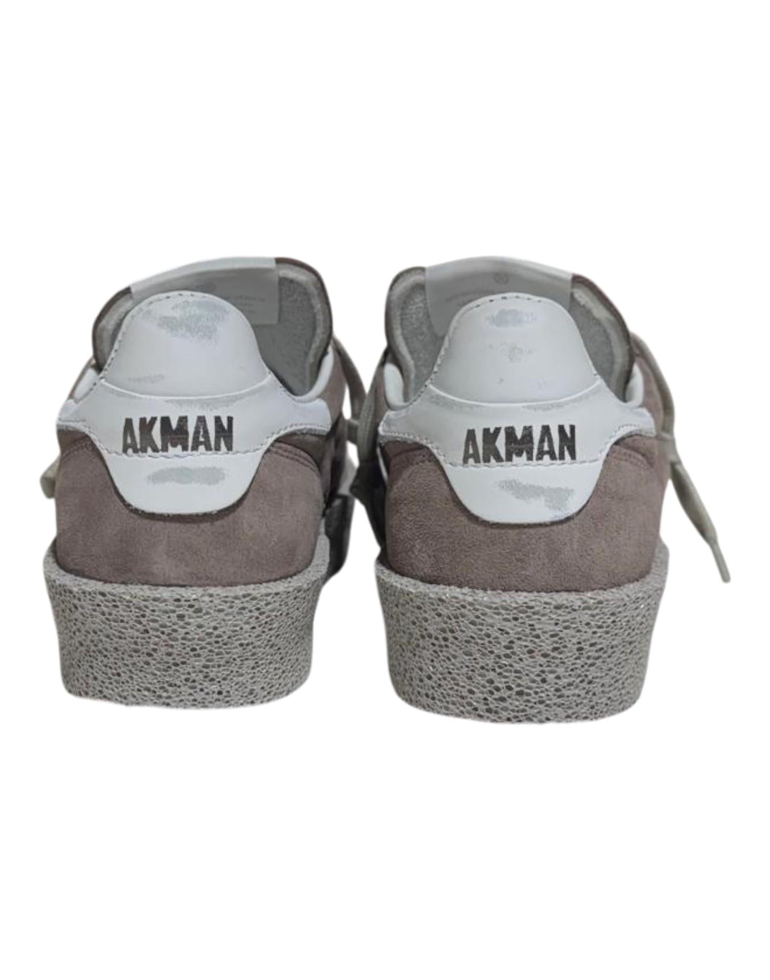 Sneaker femminile dal carattere raffinato e contemporaneo, realizzata in morbido camoscio con finitura vellutata e tonalità rosa talpa. La tomaia è impreziosita da impunture tono su tono e dal talloncino in pelle bianca con logo Akman a contrasto, che aggiunge un tocco deciso al design pulito. La suola in gomma effetto vintage garantisce comfort, leggerezza e stabilità, mentre la fodera interna in pelle e tessuto assicura traspirabilità e morbidezza. Una sneaker dal fascino sobrio ma distintivo, perfetta per completare look casual chic e contemporanei.