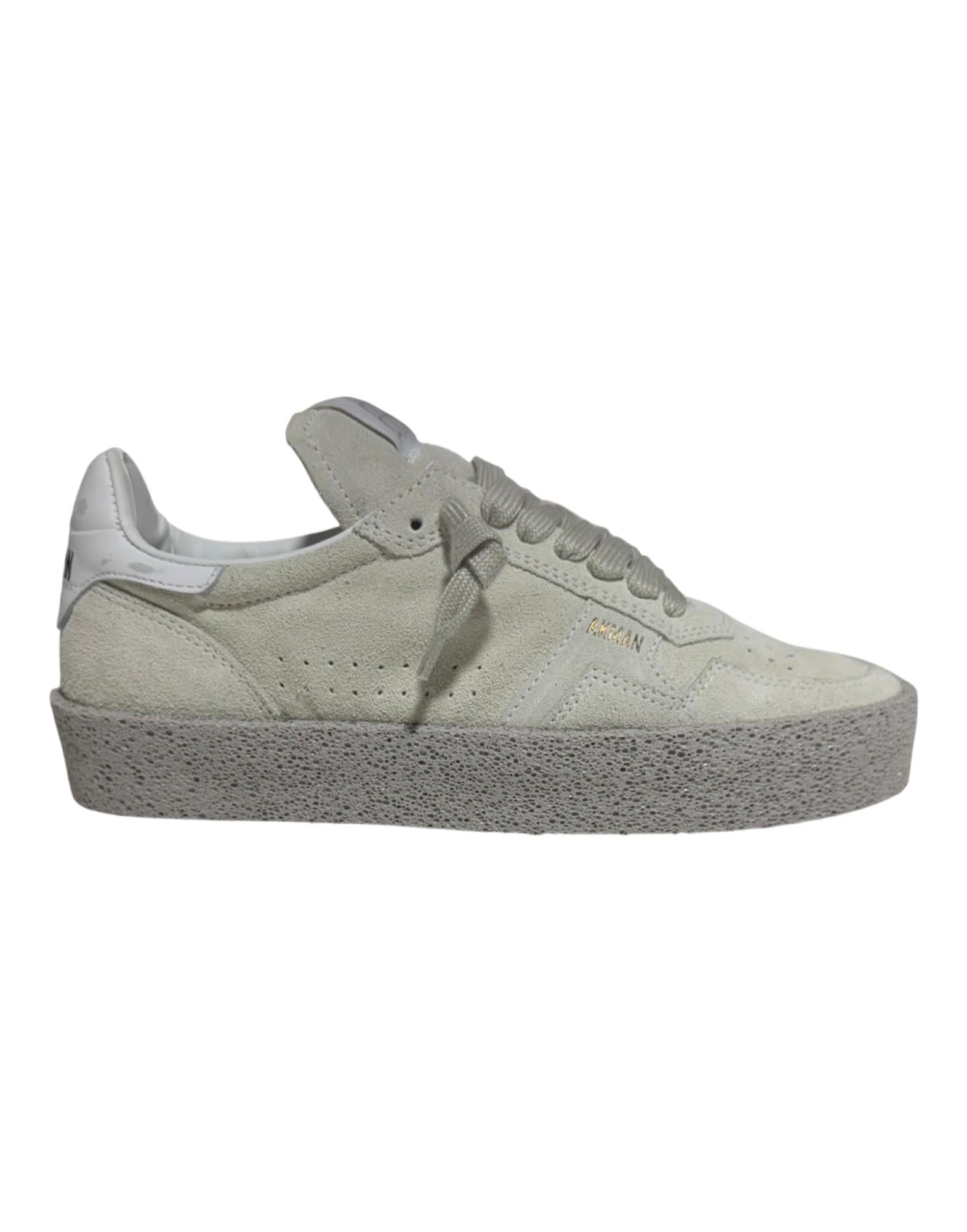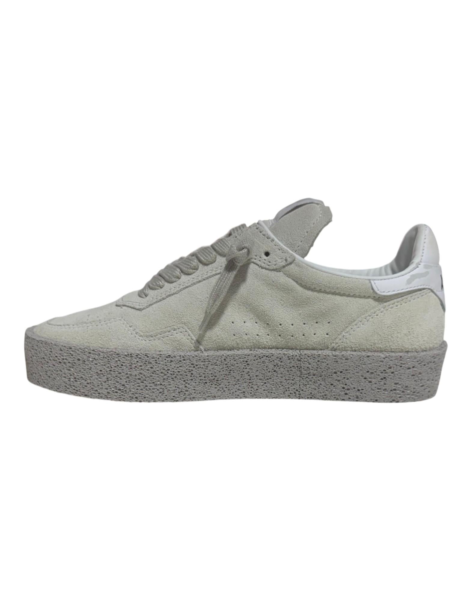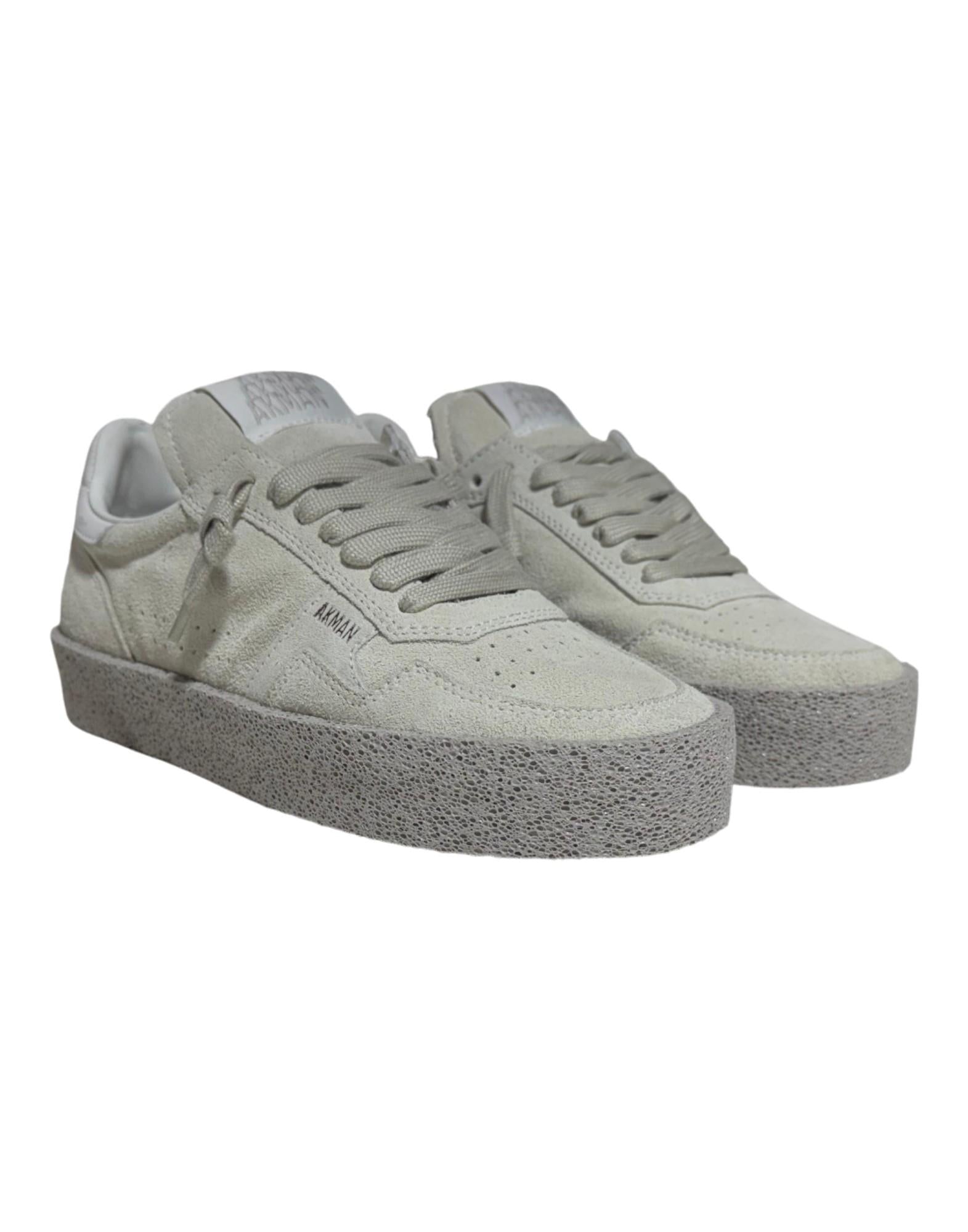 Sneaker dal design pulito e raffinato, realizzata in morbido camoscio con finitura vellutata nella tonalità bianco ghiaccio. La tomaia presenta impunture tono su tono e forature laterali che donano leggerezza visiva e traspirabilità. Il talloncino in pelle bianca con logo Akman a contrasto aggiunge un tocco distintivo e contemporaneo. La suola in gomma effetto vintage garantisce comfort, stabilità e un look vissuto elegante, mentre la fodera interna in pelle e tessuto assicura morbidezza e una calzata confortevole. Una sneaker essenziale ma ricercata, perfetta per look casual-chic e quotidiani.