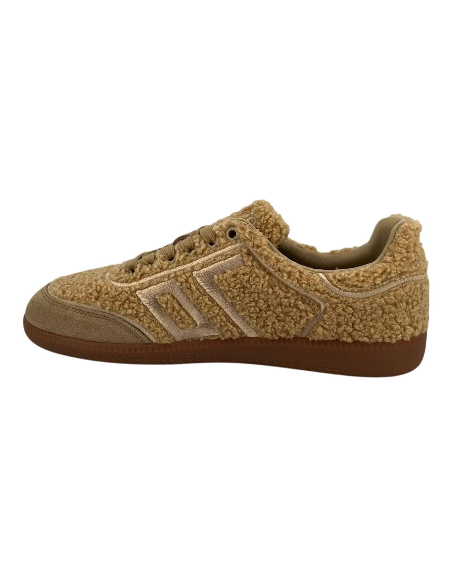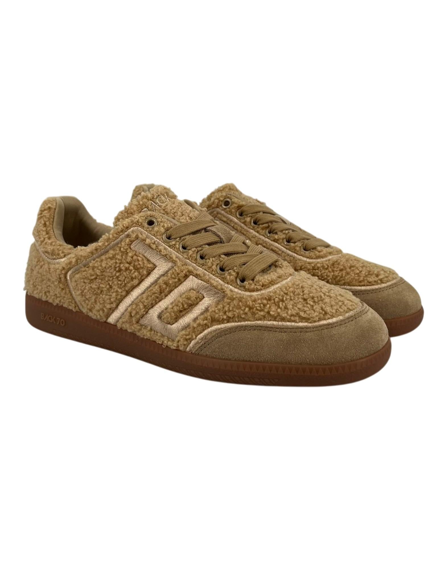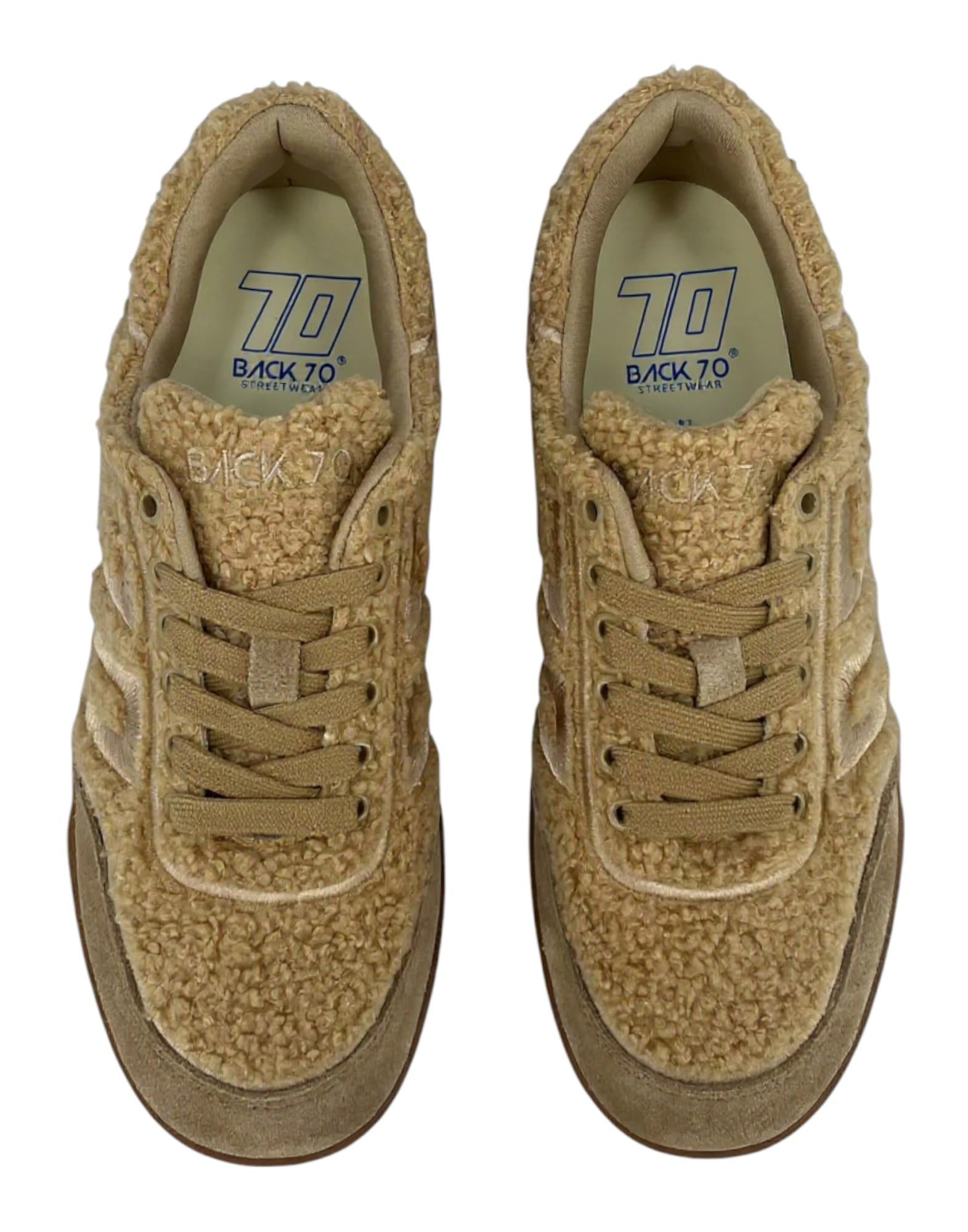 Sneaker donna dal carattere urban-chic firmata BACK70, realizzata in morbido teddy beige con dettagli in suede tono su tono.