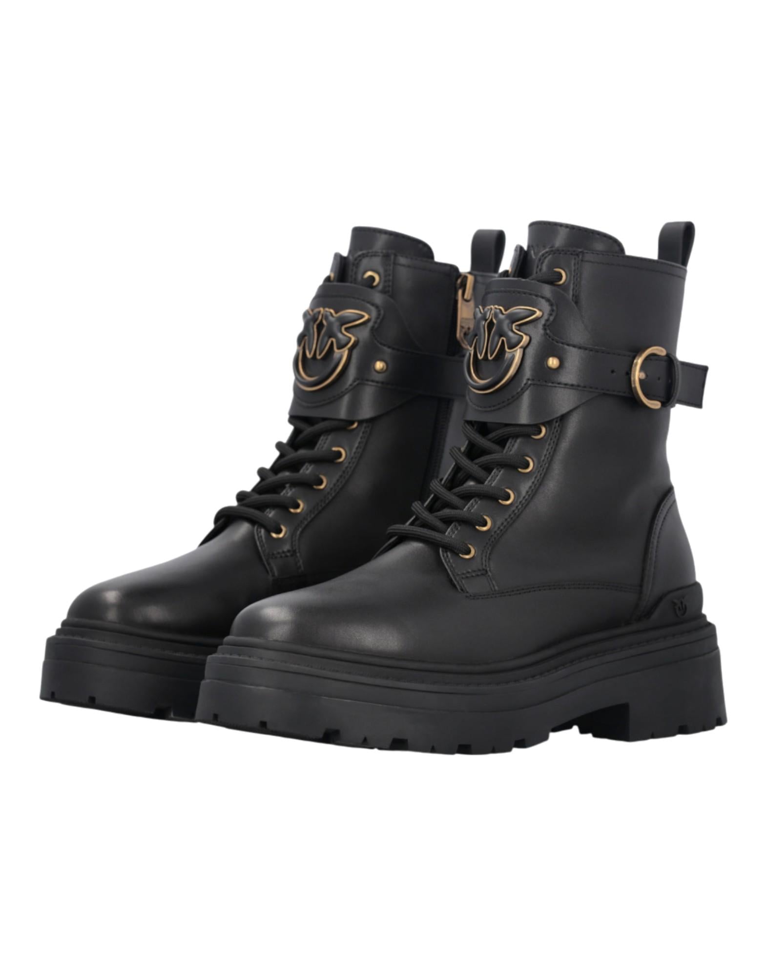 Stivaletti anfibi stringati al polpaccio dal carattere deciso, realizzati in pelle di vitello e arricchiti da un cinturino regolabile con fibbia sul davanti, impreziosito dal logo Love Birds con profili metallici. Il modello presenta una zip interna per una calzata pratica e un passante posteriore per agevolare l'indosso. La suola carrarmato in gomma con tacco da 5,5 cm assicura stabilità e un look grintoso, mentre fodera e soletta in pelle garantiscono comfort e qualità. Un anfibio ideale per donare ai tuoi look casual un tocco audace e contemporaneo.