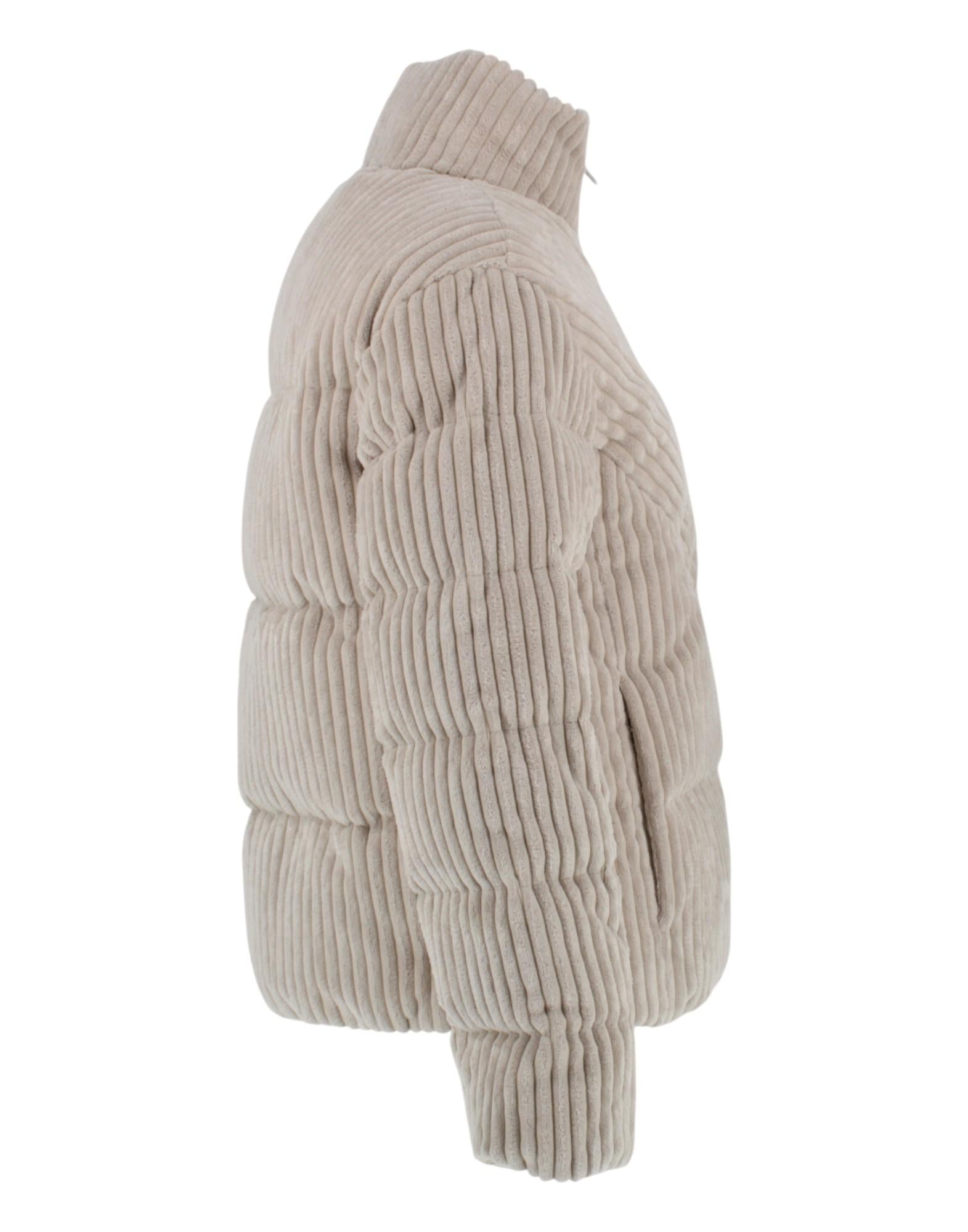 Piumino dal carattere originale e funzionale, definito da linee dinamiche e tessuto in velluto a costine. Il collo alto offre massima protezione dal freddo, mentre la coulisse regolabile sul fondo consente di personalizzare la vestibilità. Un capo distintivo, ideale per affrontare l'inverno con stile e comfort.