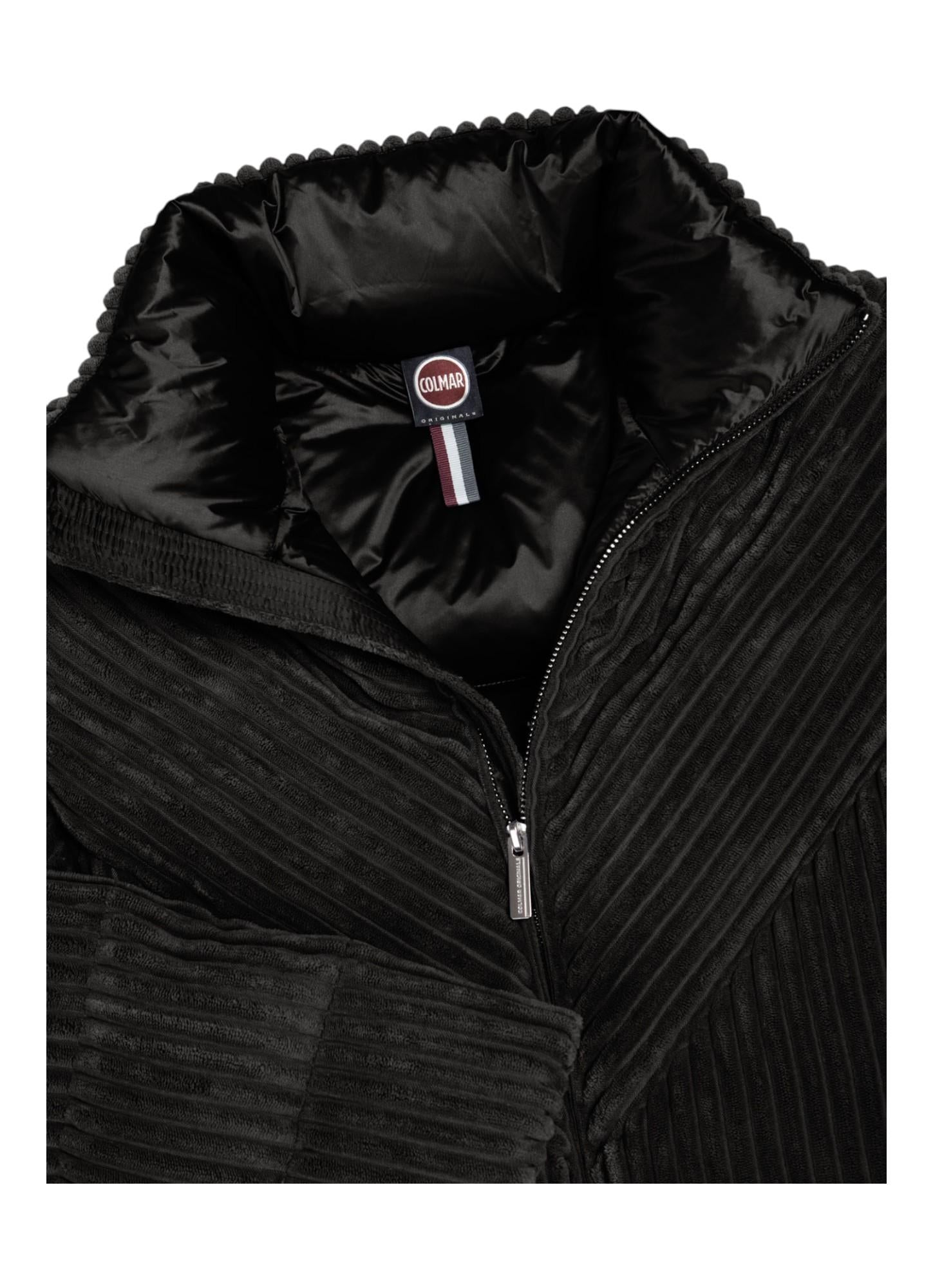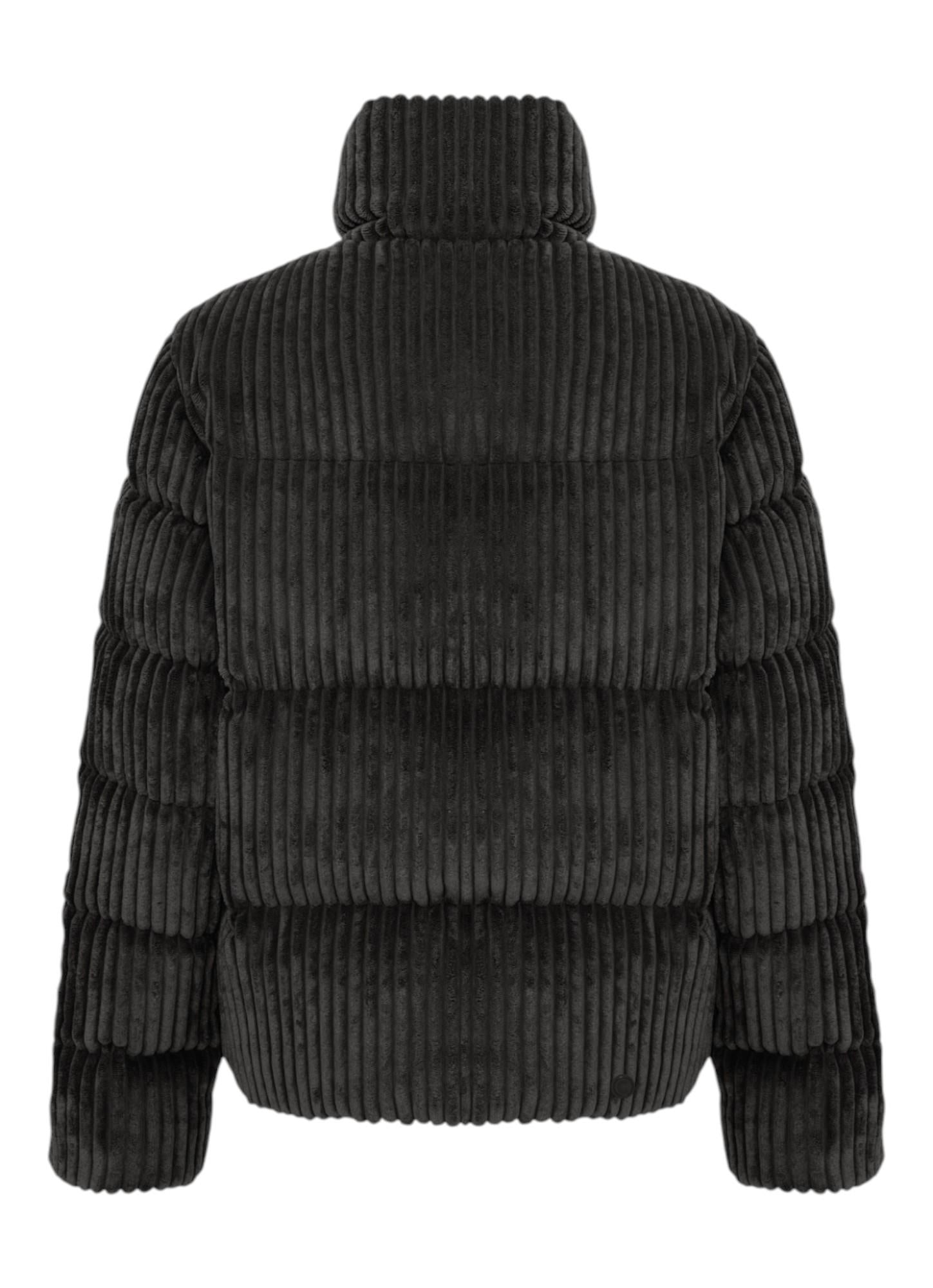 Piumino dal design distintivo e funzionale, realizzato in velluto a costine con linee dinamiche che ne esaltano lo stile. Il collo alto assicura protezione dal freddo, mentre la coulisse regolabile sull'orlo consente di personalizzare la vestibilità. Un capo caldo e versatile, perfetto per affrontare l'inverno con eleganza.