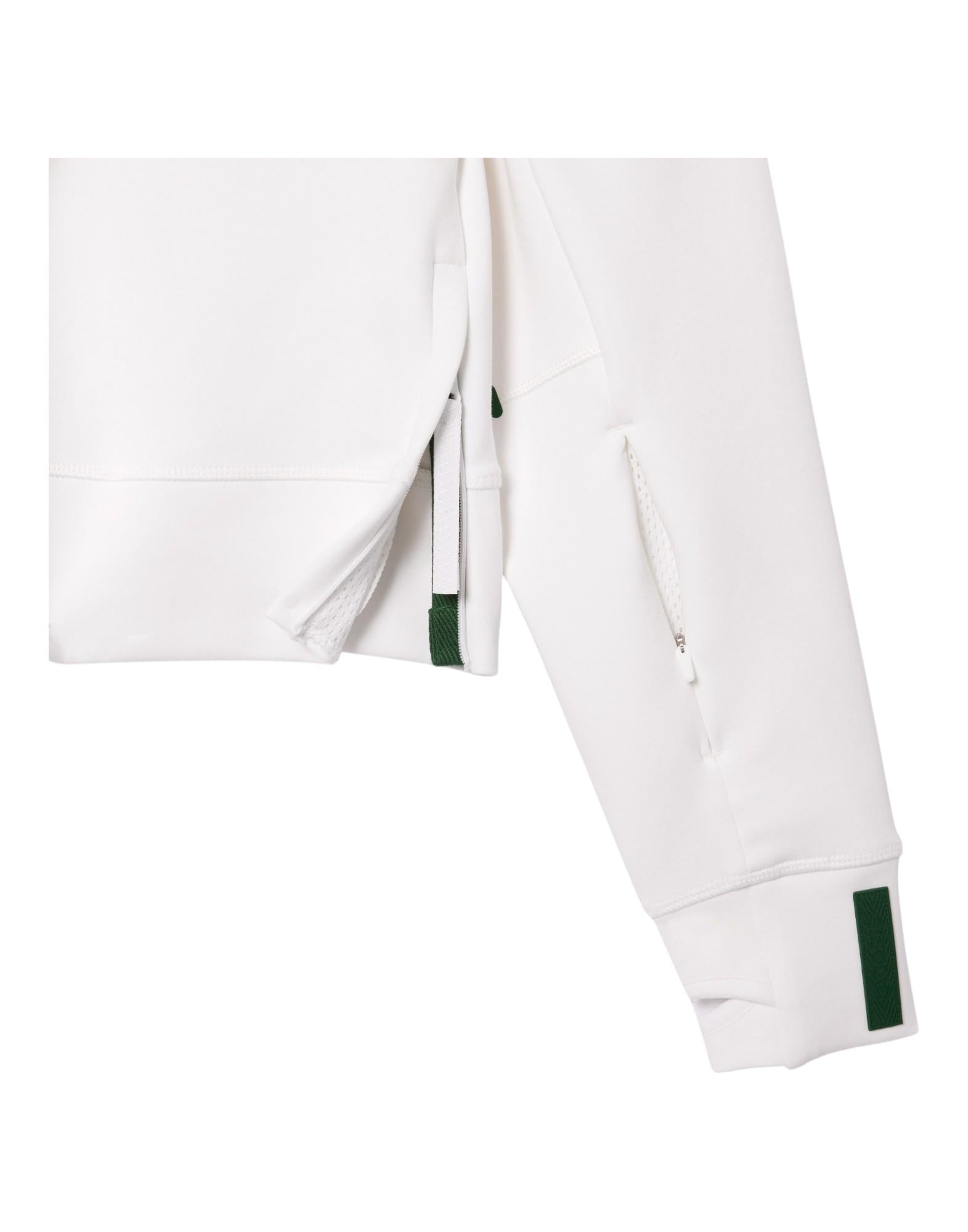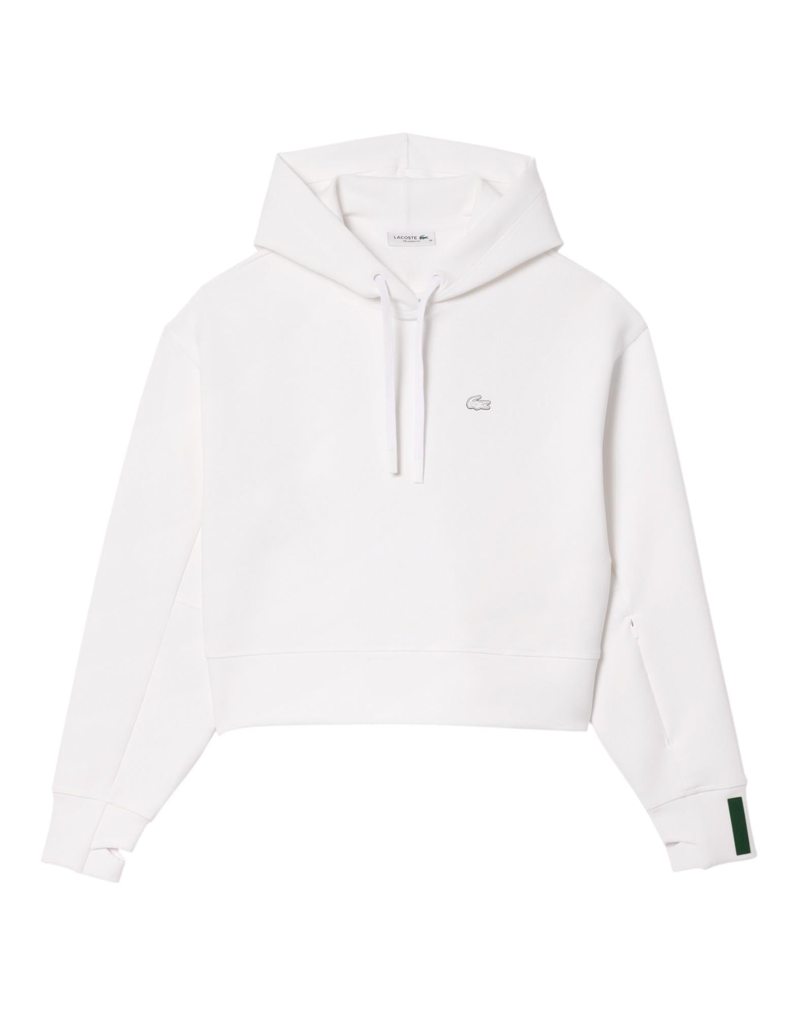 Felpa con cappuccio che unisce moda e stile sportivo, realizzata in tessuto double face elasticizzato in misto cotone. Caratterizzata da un taglio corto in relaxed fit, offre dettagli pratici e raffinati come lo spacco laterale con zip, i passanti per il pollice nei polsini e la tasca sulla manica con chiusura nascosta. Rifinita con l'iconico coccodrillo in silicone sul petto. Nota: il capo veste ampio, si consiglia di scegliere una taglia in meno rispetto alla propria abituale.