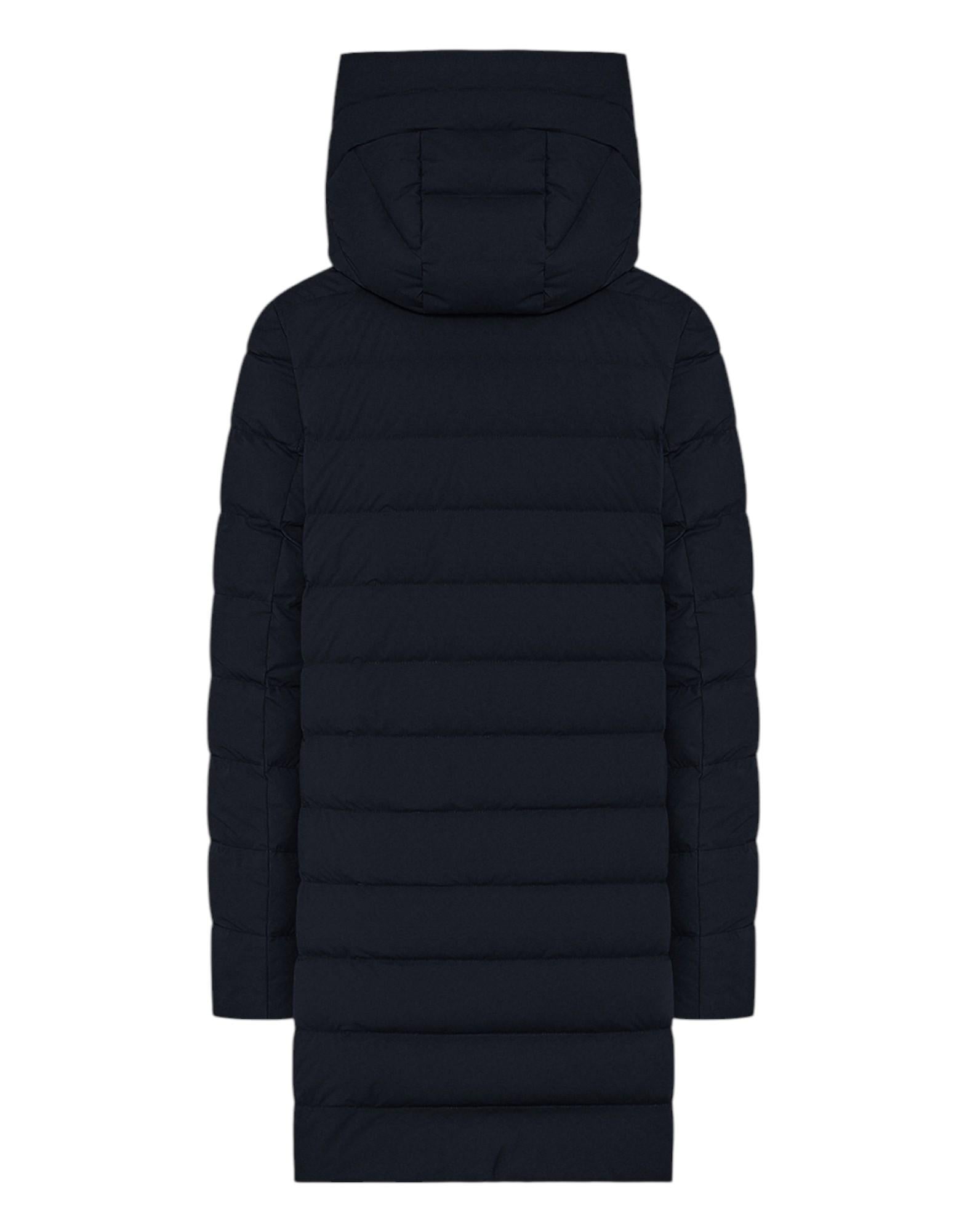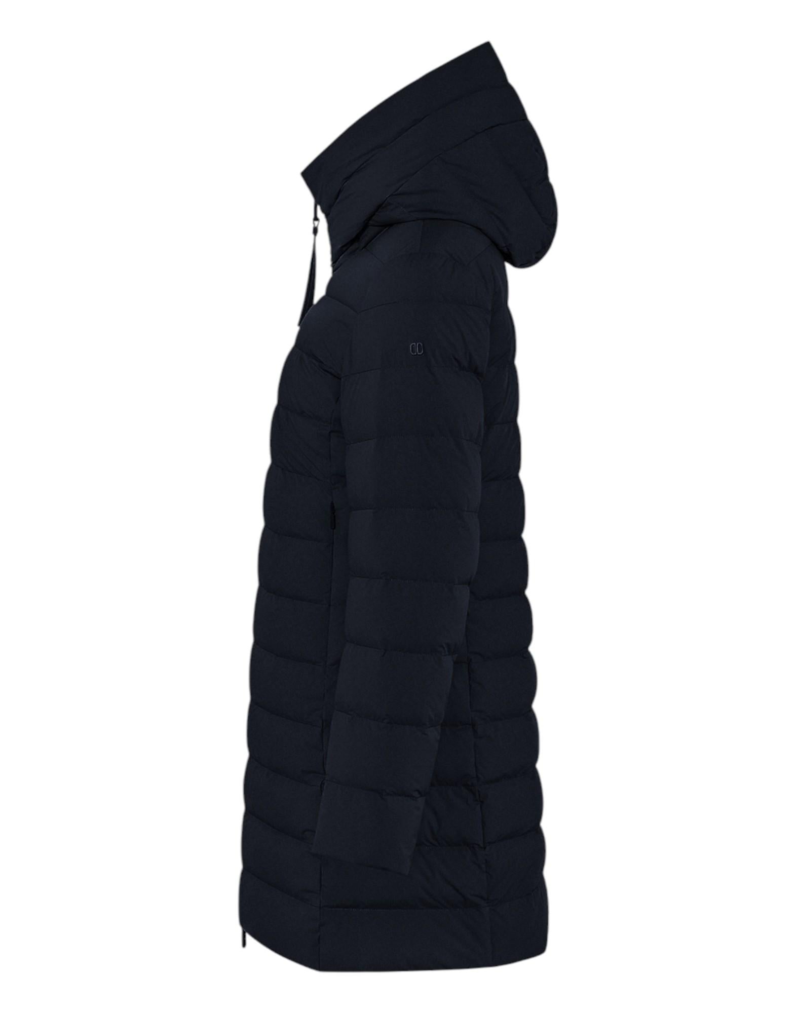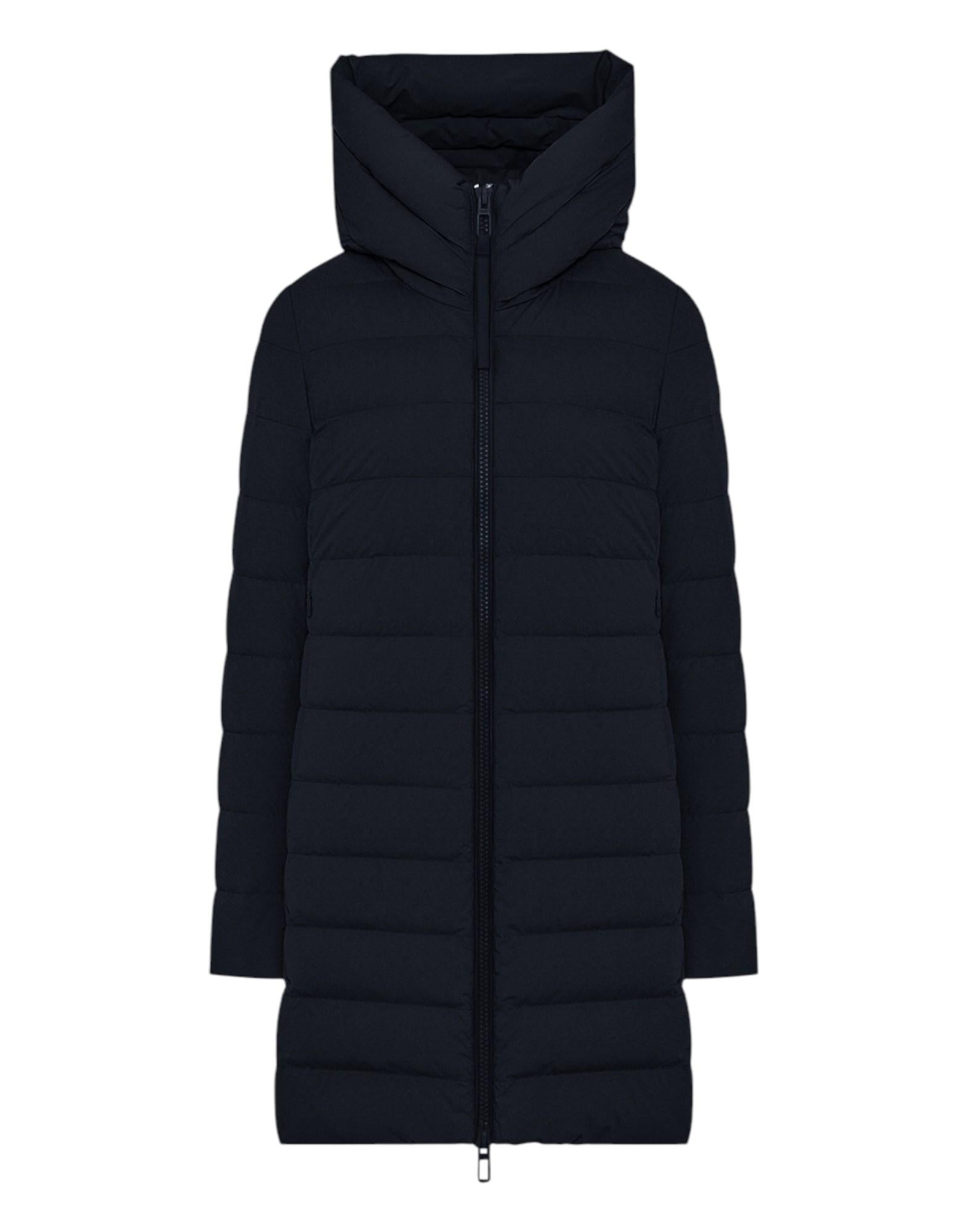 Giaccone lungo dal design minimal e moderno, ideale per affrontare la stagione fredda con stile ed eleganza. La trapuntatura orizzontale esalta la silhouette, mentre il cappuccio regolabile e il collo alto garantiscono protezione e comfort nelle giornate più fredde.