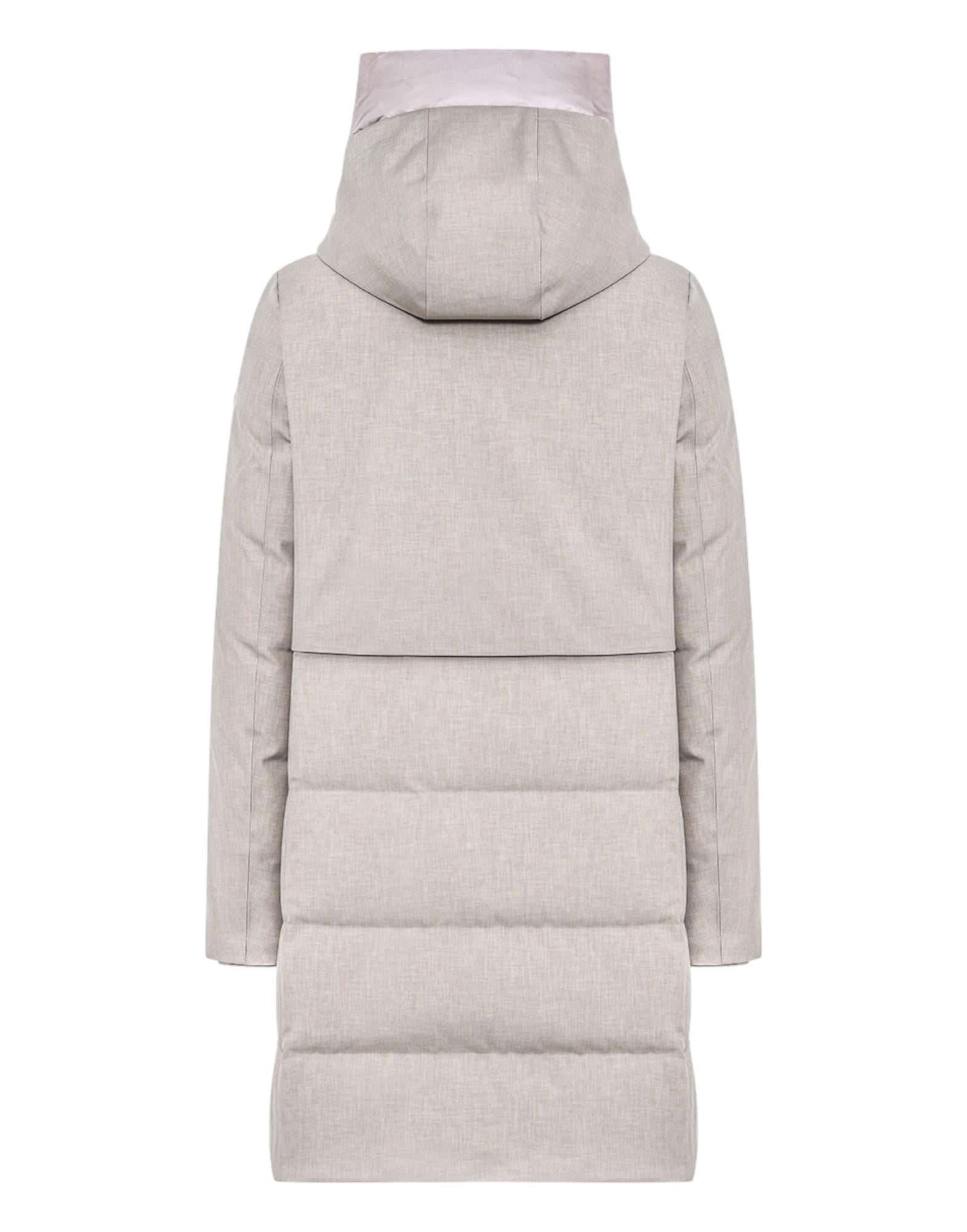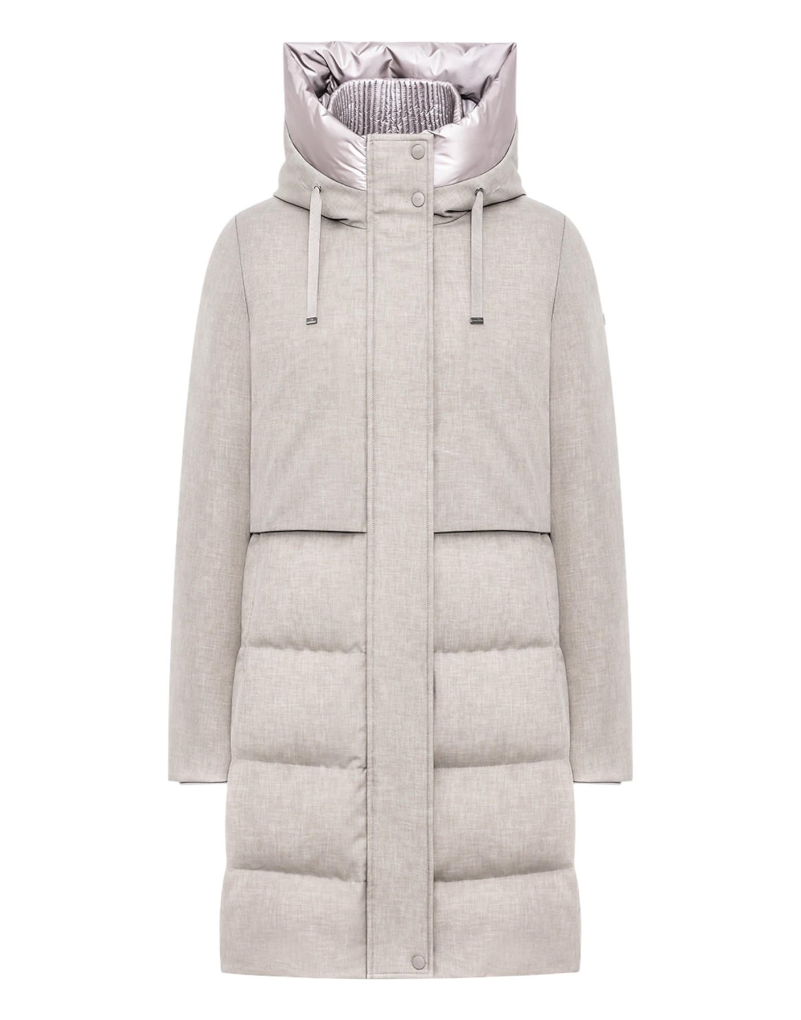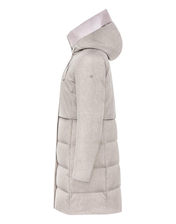 Giaccone lungo dal design moderno e raffinato, perfetto per garantire eleganza e protezione nelle giornate fredde. La linea minimal e la trapuntatura orizzontale donano un look contemporaneo, mentre il collo alto e il cappuccio regolabile assicurano comfort e praticità.