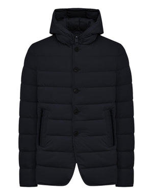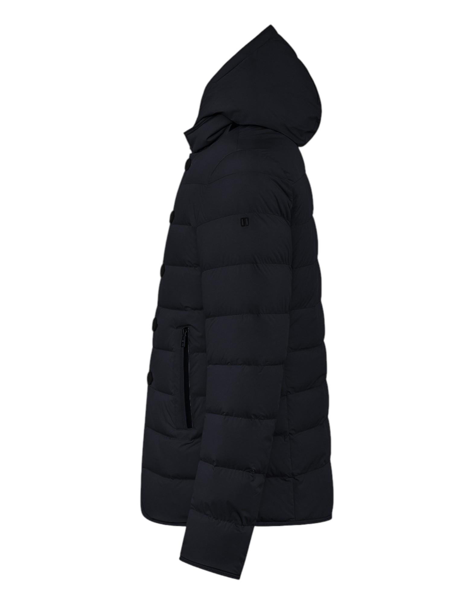 Giubbino imbottito dal design essenziale e contemporaneo, caratterizzato da un taglio leggermente corto e linee pulite. Realizzato in tessuto tecnico elasticizzato, assicura comfort, protezione e libertà di movimento, ideale per affrontare la stagione fredda con stile.