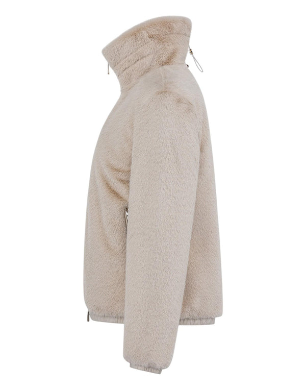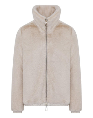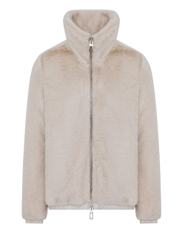 Giubbino corto da donna dal design contemporaneo e sofisticato, caratterizzato da un effetto pelliccia ecologica che assicura morbidezza e calore. Il collo alto e la zip frontale a doppio cursore garantiscono praticità e protezione nelle giornate fredde, mentre i dettagli minimal esaltano uno stile elegante e versatile. Perfetto per completare look casual o più raffinati con un tocco moderno.