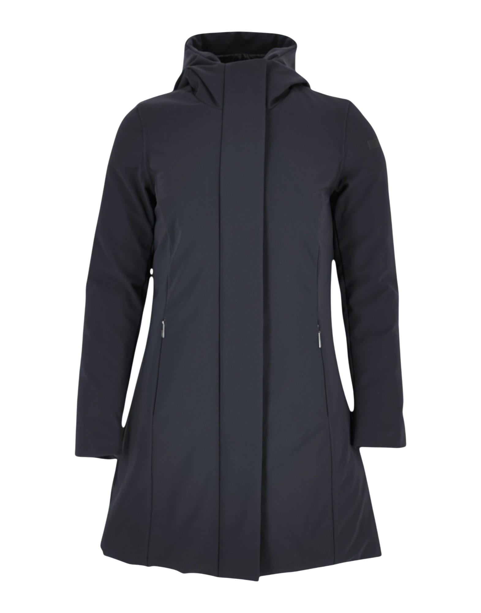 L'esterno in Surflex® stretch ultra opaco, compatto e morbido, si contrappone ai canali tubici termosaldati che custodiscono l'imbottitura in piuma d'anatra 90/10, garantendo calore, comfort e leggerezza. La lunghezza a metà gamba e il cappuccio avvolgente valorizzano la silhouette, mentre le tasche laterali con zip invisibili e il logo RRD a microiniezione nera sulla manica completano un capo versatile e raffinato, ideale per la città e il tempo libero.