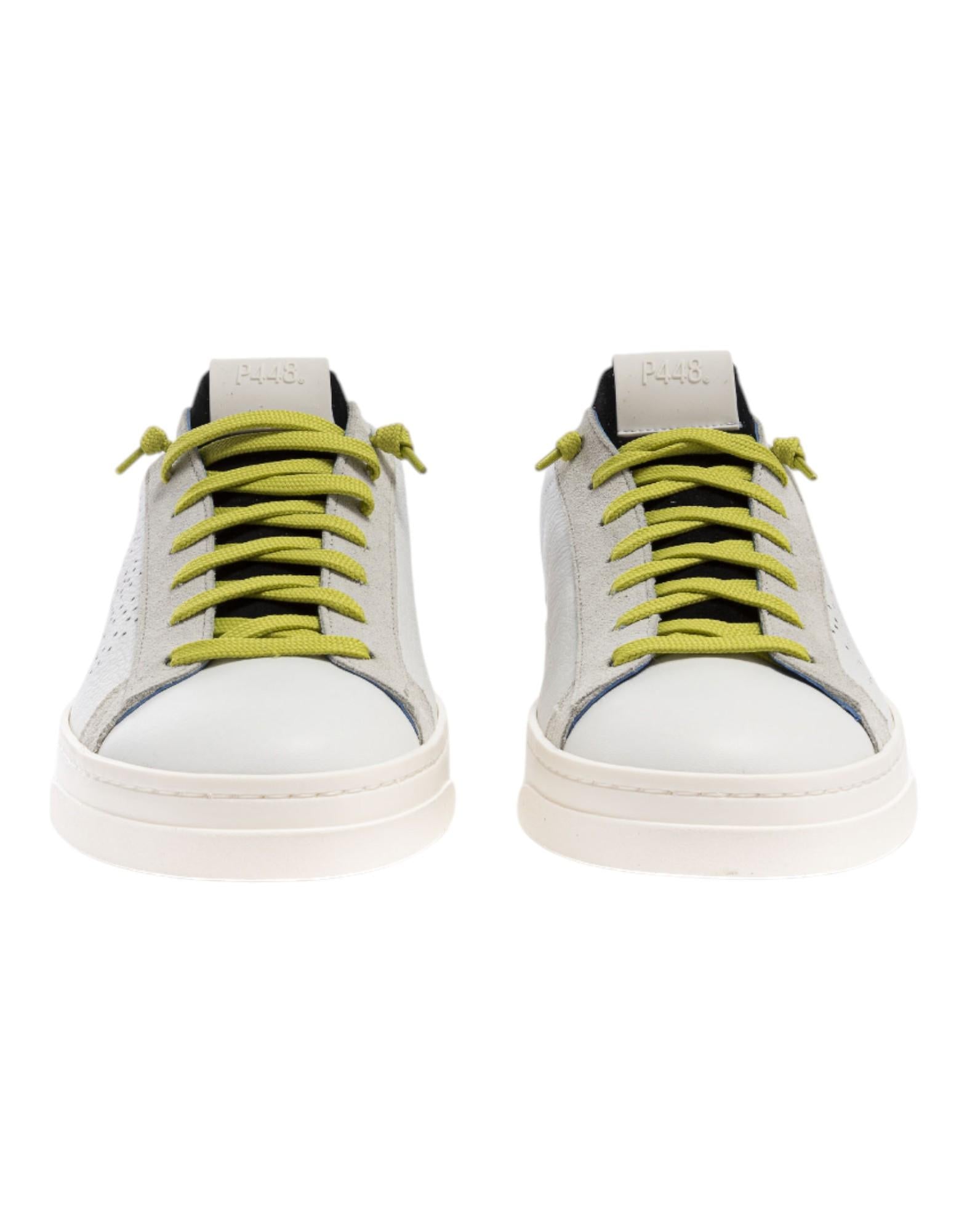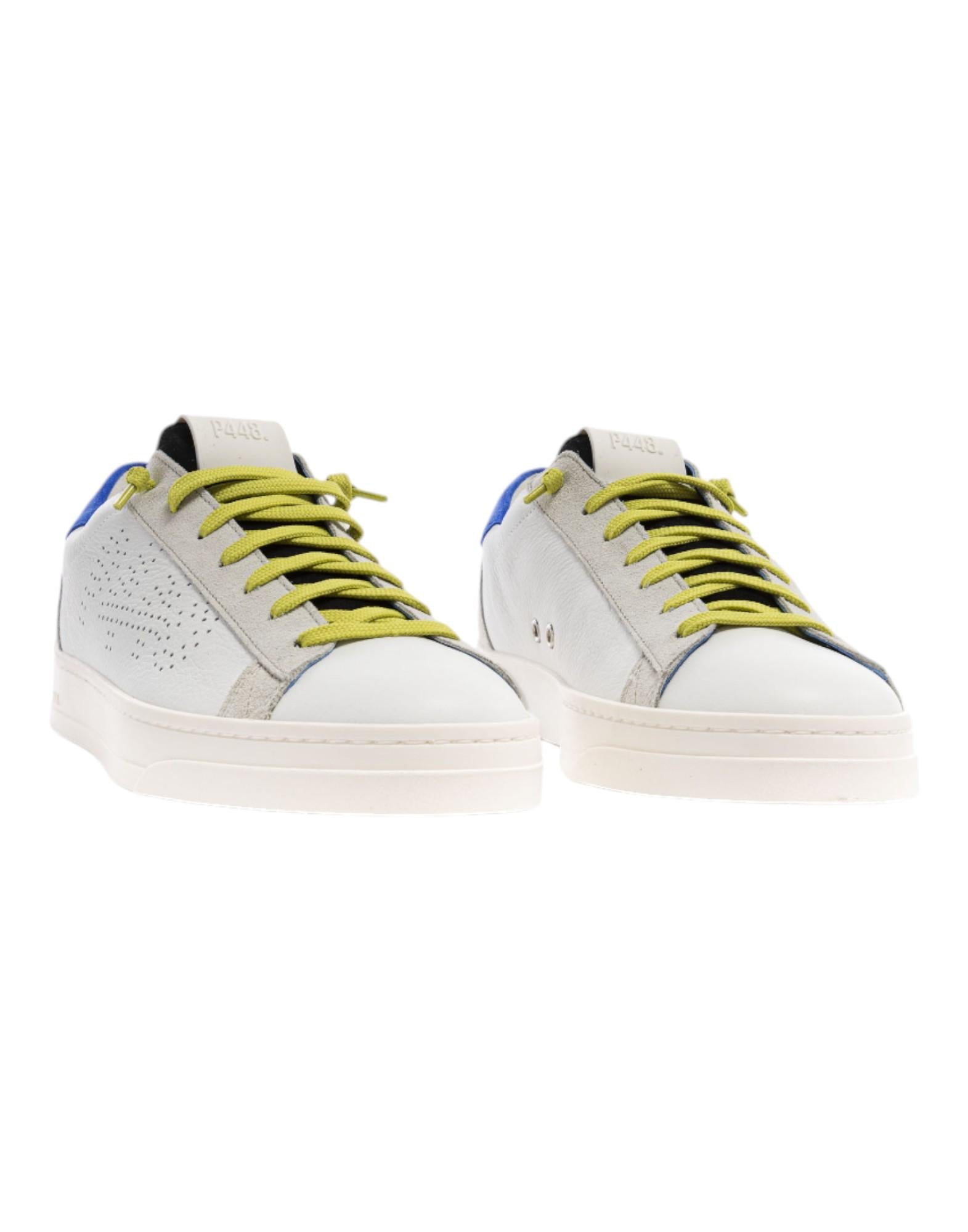 P448 - Sneaker in pelle bianca con dettagli multicolor