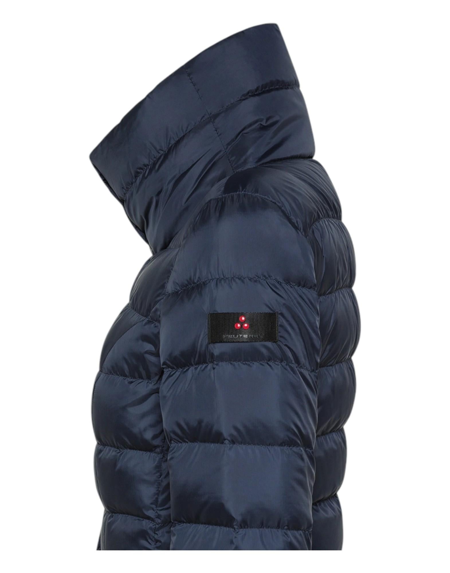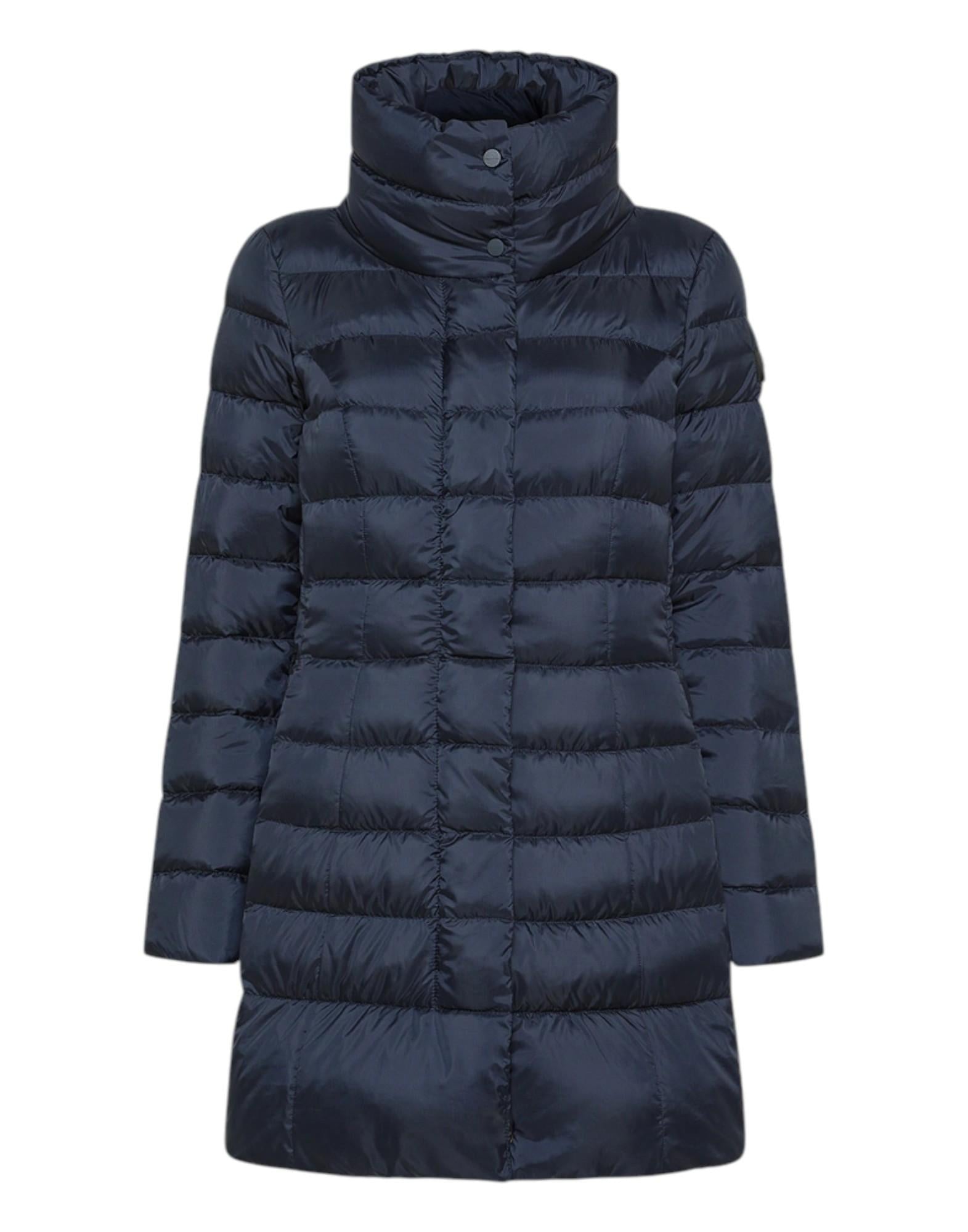 Un piumino lungo dal taglio slim con collo alto, realizzato in 100% poliestere riciclato post consumo. Il tessuto super-leggero ha una struttura extra-compatta e finitura semi-opaca, perfetto per una silhouette moderna.