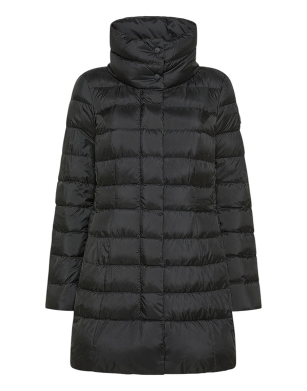 Un piumino lungo dal taglio slim con collo alto, realizzato in 100% poliestere riciclato post consumo. Il tessuto super-leggero ha una struttura extra-compatta e finitura semi-opaca, perfetto per una silhouette moderna.