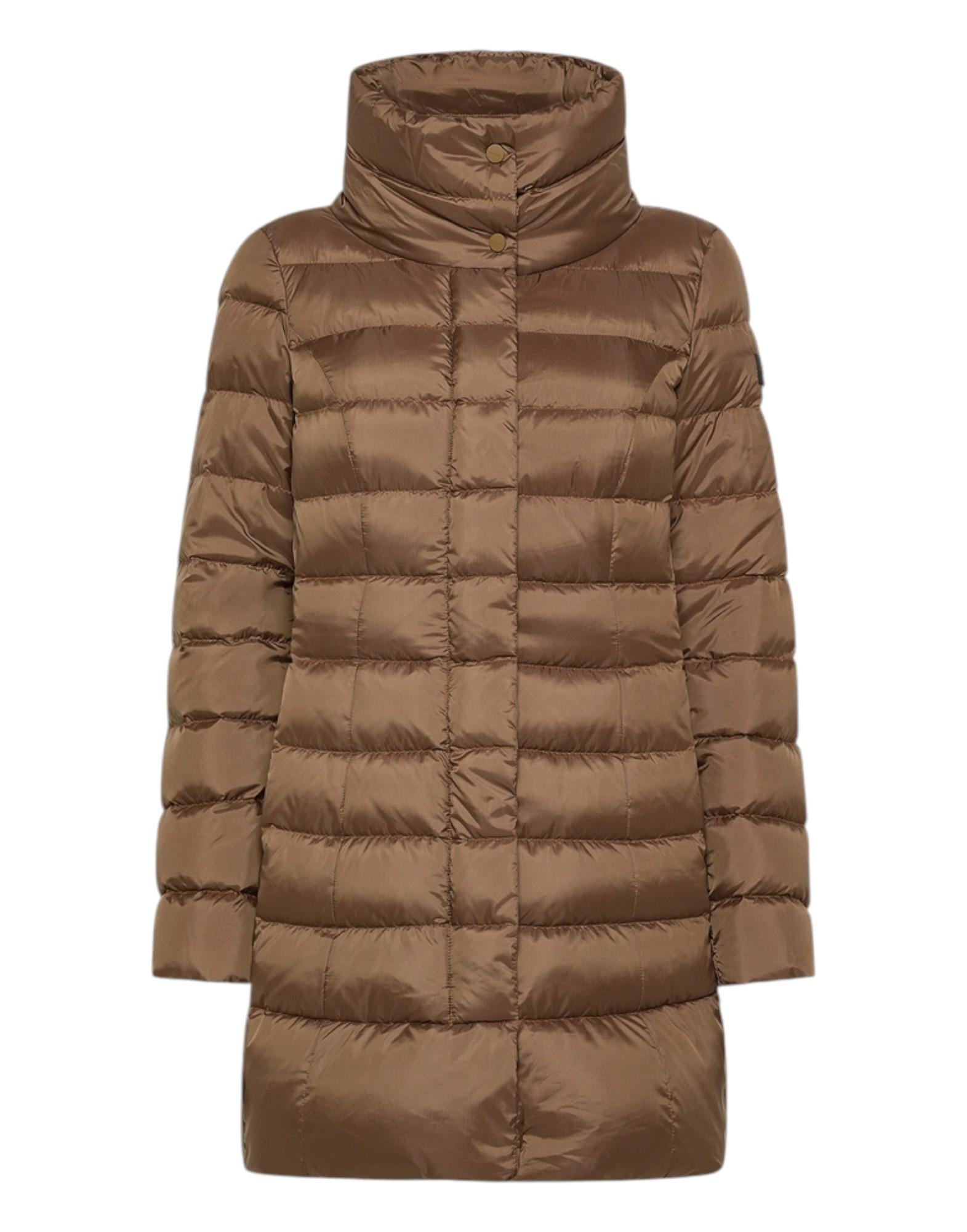 Un piumino lungo dal taglio slim con collo alto, realizzato in 100% poliestere riciclato post consumo. Il tessuto super-leggero ha una struttura extra-compatta e finitura semi-opaca, perfetto per una silhouette moderna.