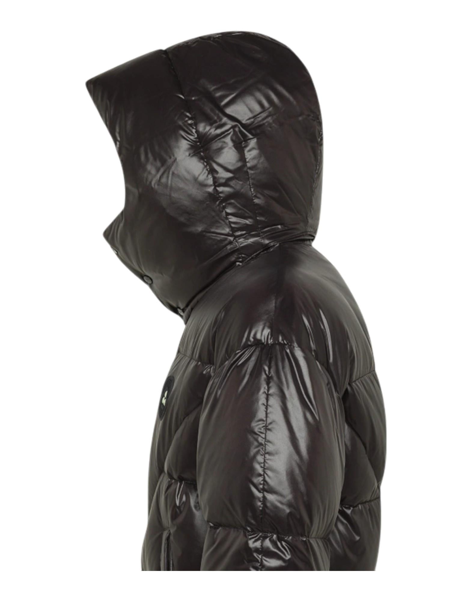 Piumino genderless dal look bold, realizzato in nylon lakkè lucido con speciali trattamenti termici che ne esaltano la brillantezza e la morbidezza al tatto. Le maxi trapunte donano volume e carattere, mentre il cappuccio con bottoni a pressione richiama la forma di una balaclava, garantendo massima protezione quando completamente chiuso. La zip nera centrale è coperta da patta, la coulisse regolabile in vita e il maxi logo tondo sul petto accentuano l'attitudine street. L'imbottitura in piuma naturale certificata offre calore e leggerezza, mentre il tessuto wind resistant e water repellent con trattamento PFC Free protegge dagli agenti atmosferici senza sostanze nocive. Parte della capsule AI25 Peuterey Plurals x Tony Effe, rappresenta l'incontro tra lo stile urban provocatorio dell'artista romano e il know-how tecnico del brand. Un capo esclusivo e iconico, pensato per chi vuole affrontare la città con personalità.