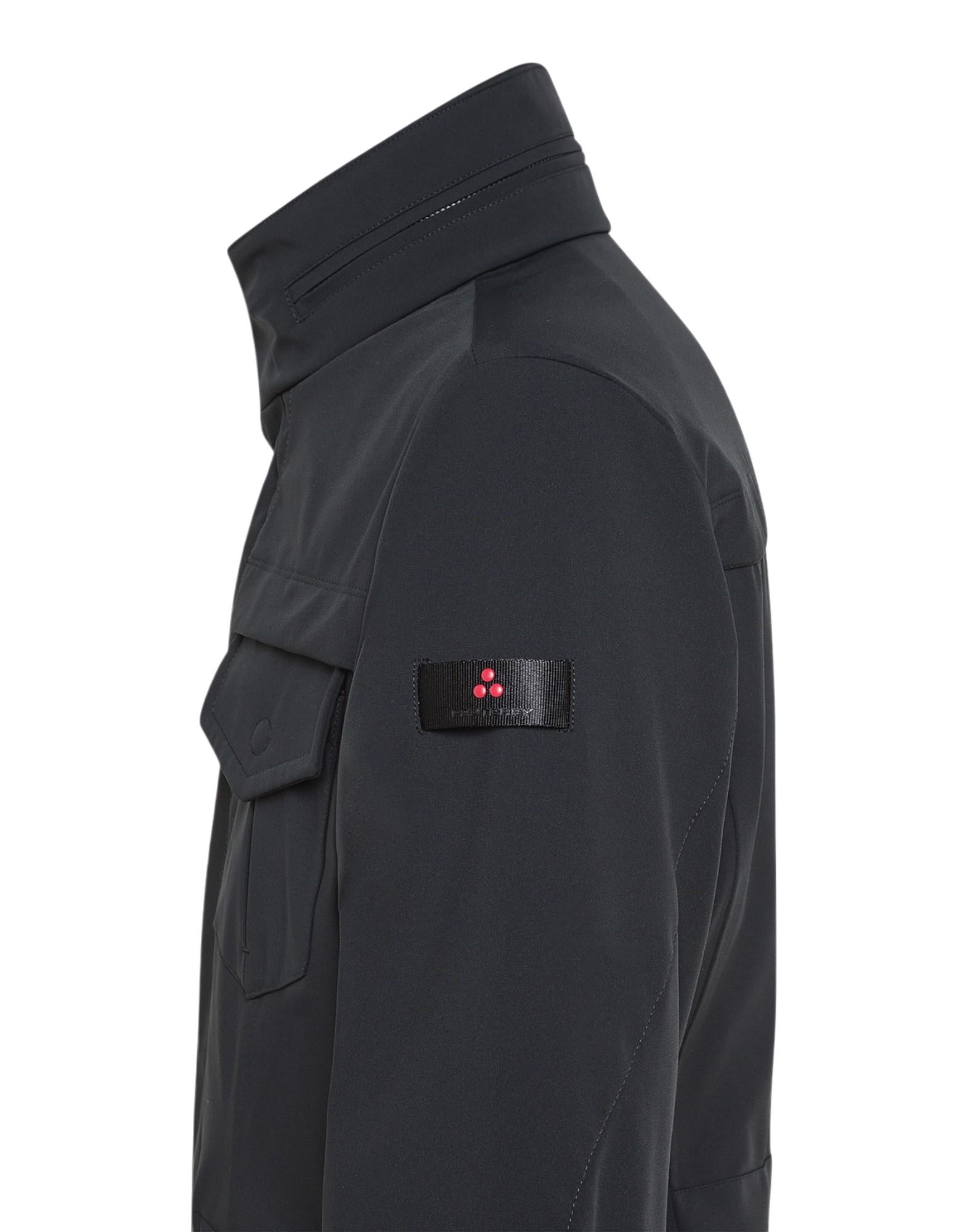 Il modello reinterpreta la field jacket di ispirazione militare in chiave urbana e contemporanea, mantenendo un'estetica essenziale e funzionale, tipica dello stile Peuterey. Il collo alto con cappuccio estraibile aumenta la versatilità del capo, rendendolo adatto a diverse condizioni climatiche.