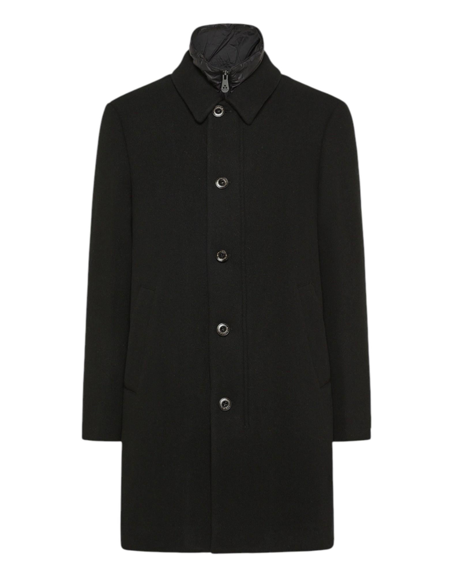 Elegantissimo cappotto a tinta unita realizzato in morbido panno misto lana e acrilico, dalla struttura compatta e dalla linea dritta che valorizza silhouette classiche e moderne. Il collo a camicia e la chiusura con bottoni conferiscono un tocco sartoriale, mentre la pettorina interna removibile imbottita in materiale sintetico, con chiusura a zip, garantisce un isolamento termico extra per affrontare con stile anche le giornate più fredde. Parte della raffinata linea Peuterey Première, è ideale per completare un guardaroba urbano di alto livello.