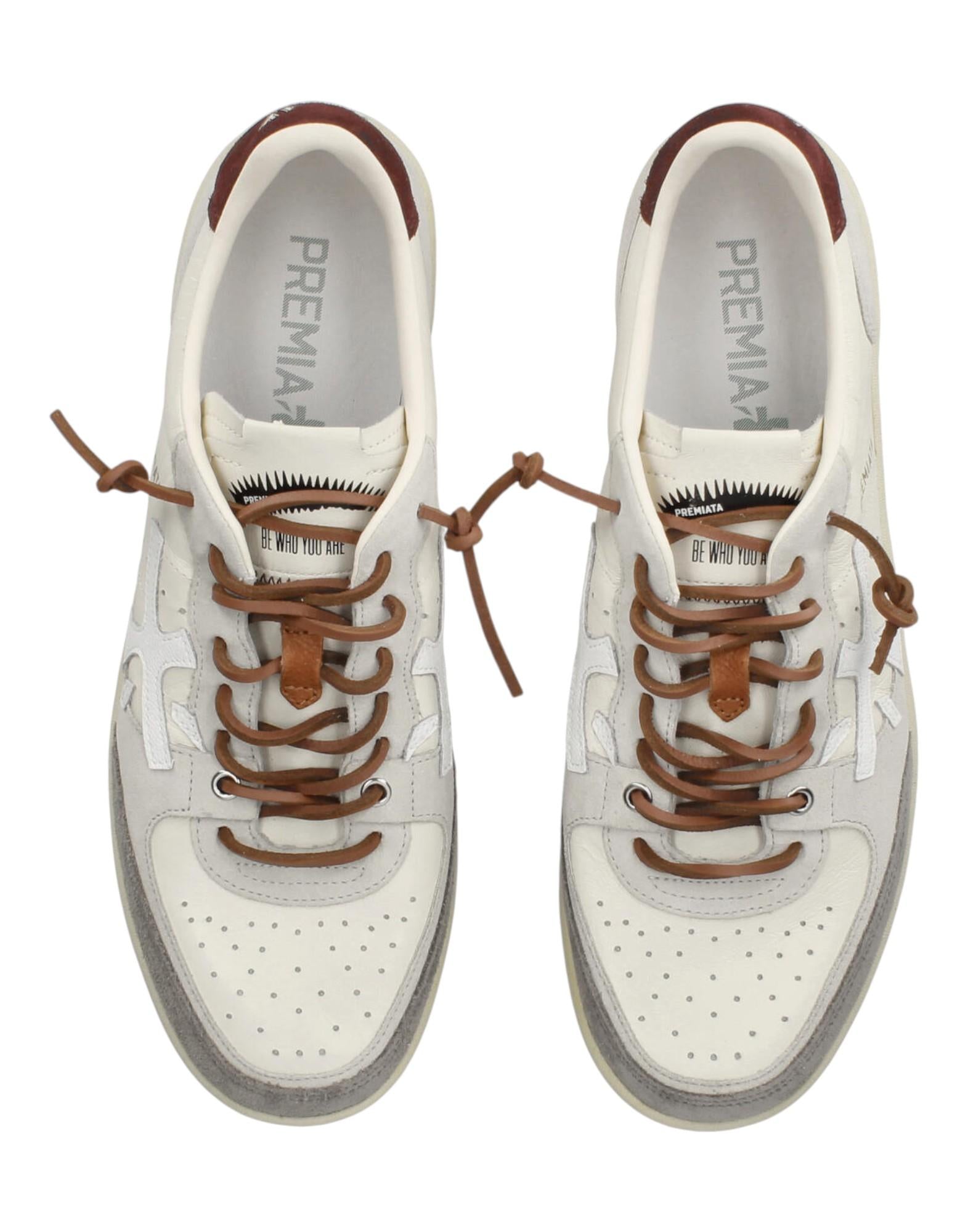 Premiata - Sneaker BSKT CLAY 7616 - Pelle e Camoscio - Bianco/Logo Oversize