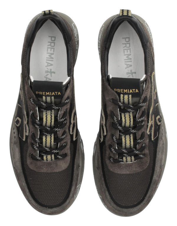 La NOUS VAR 7731 rappresenta la continua ricerca di innovazione e stile firmata Premiata. Questo modello cassetta-running combina una suola leggera e ammortizzante in EVA e gomma con una tomaia in mix tecnico e pelle di vitello, per garantire comfort, resistenza e traspirabilità. Un design essenziale ma performante, arricchito da dettagli distintivi, ideale per chi desidera uno stile urbano moderno e versatile.