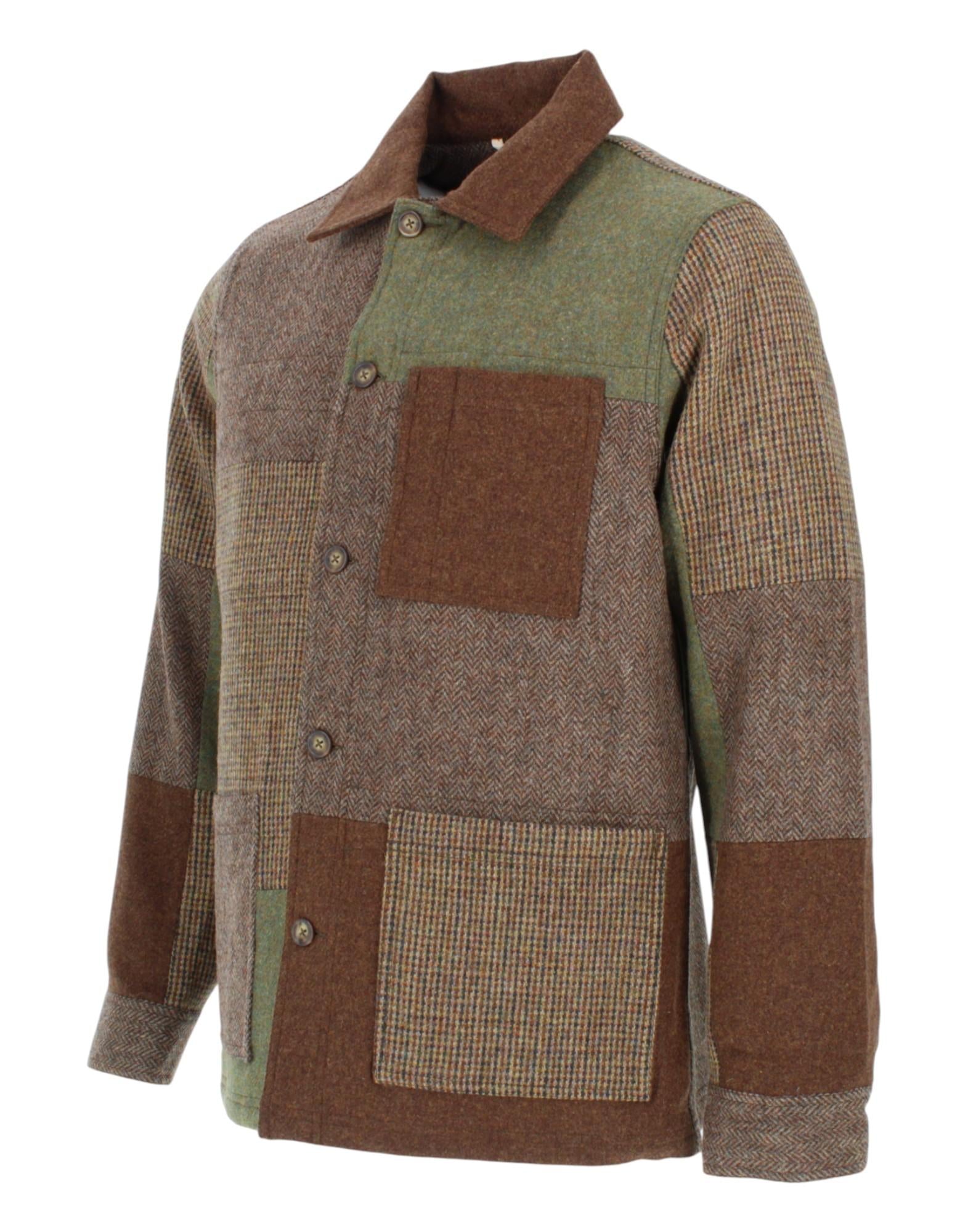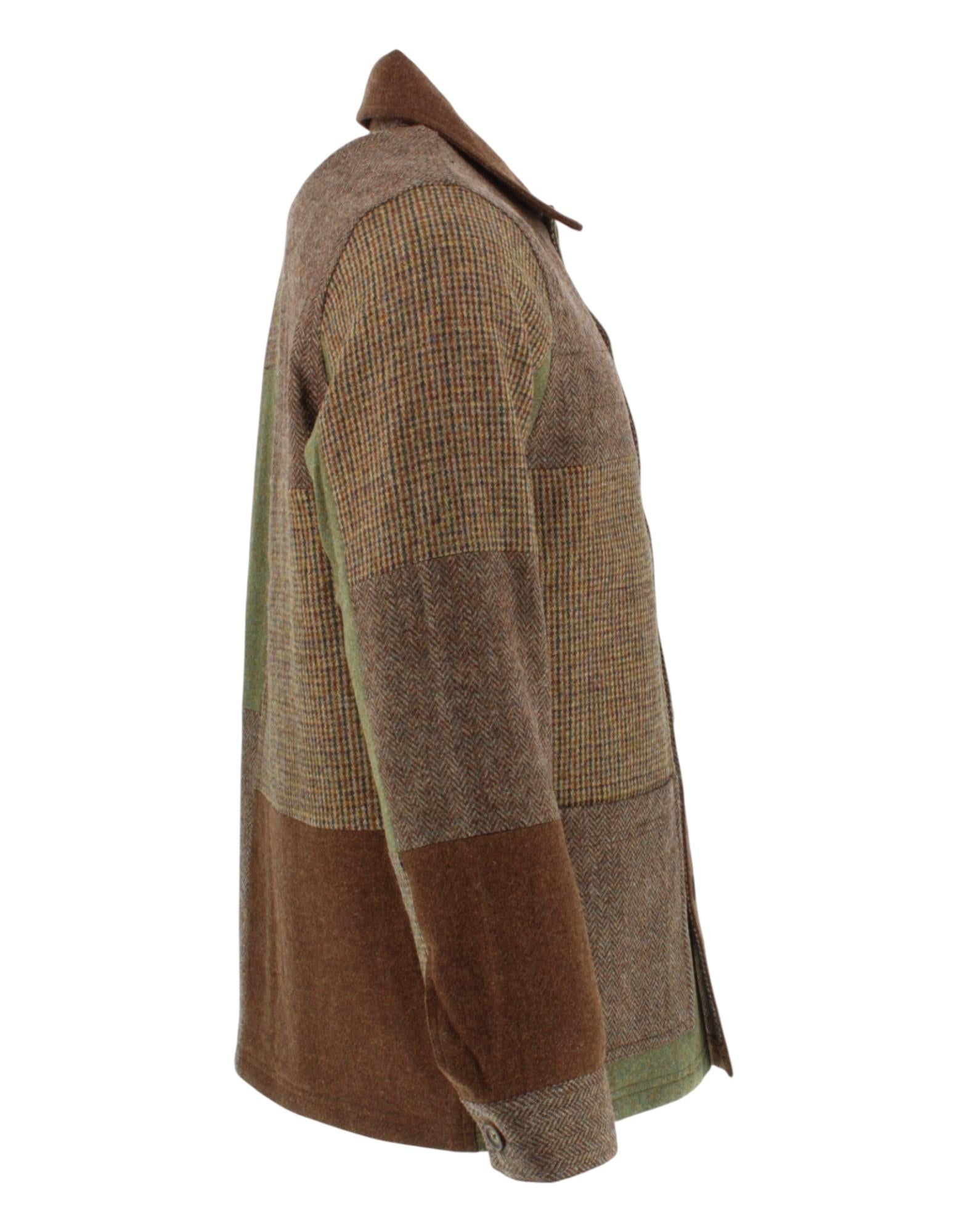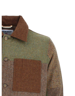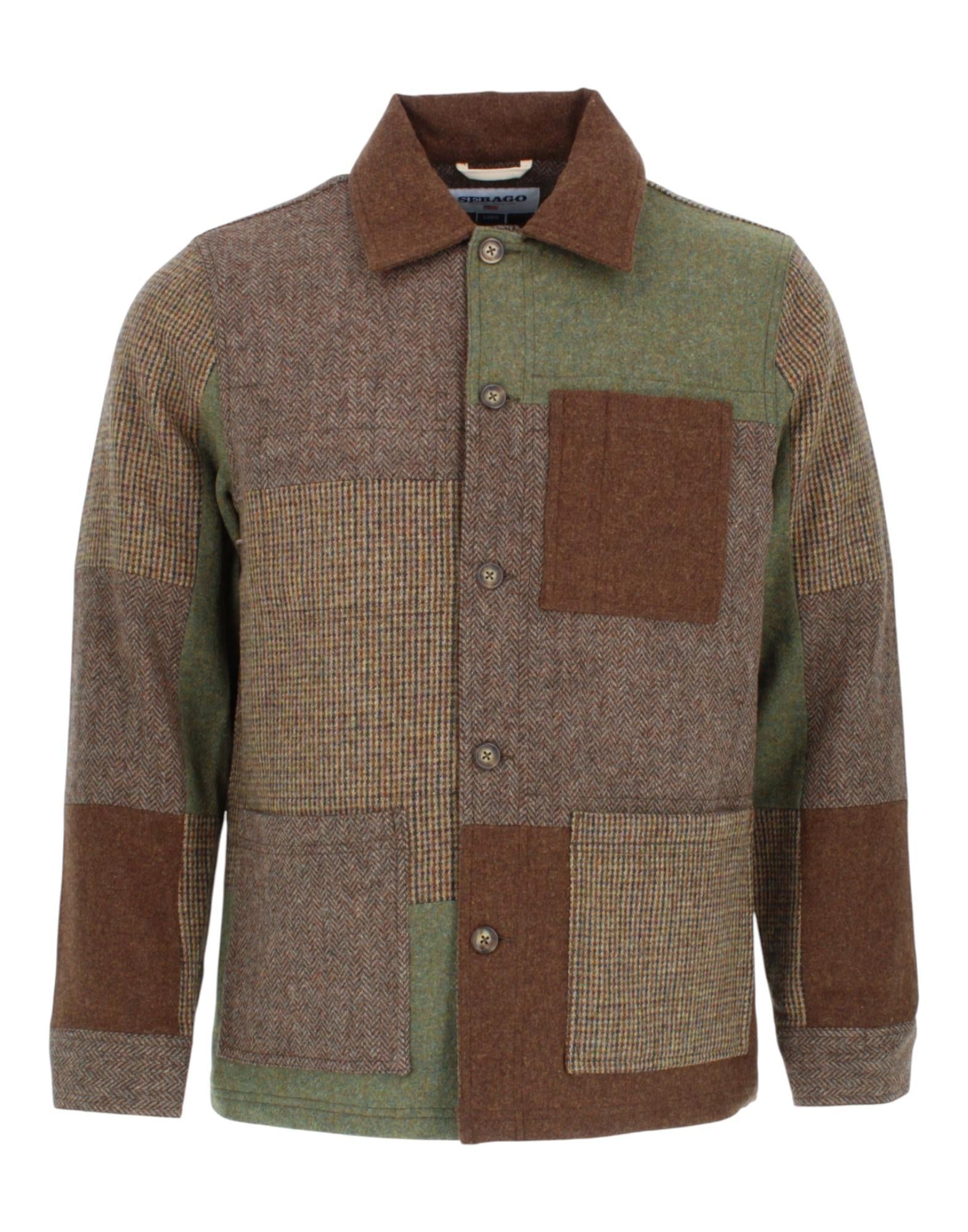 Giacca dallo stile distintivo firmata Sebago, realizzata in tessuto di lana patchwork che combina motivi a spina di pesce, check e tinta unita. La costruzione a pannelli multicolore conferisce al capo un carattere unico e artigianale, ideale per arricchire look casual e raffinati.