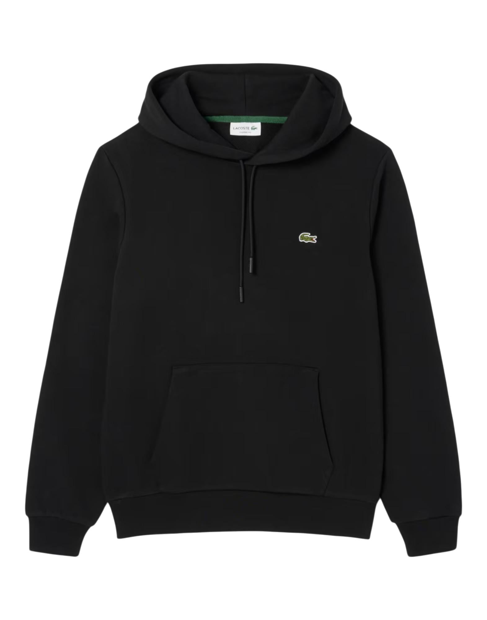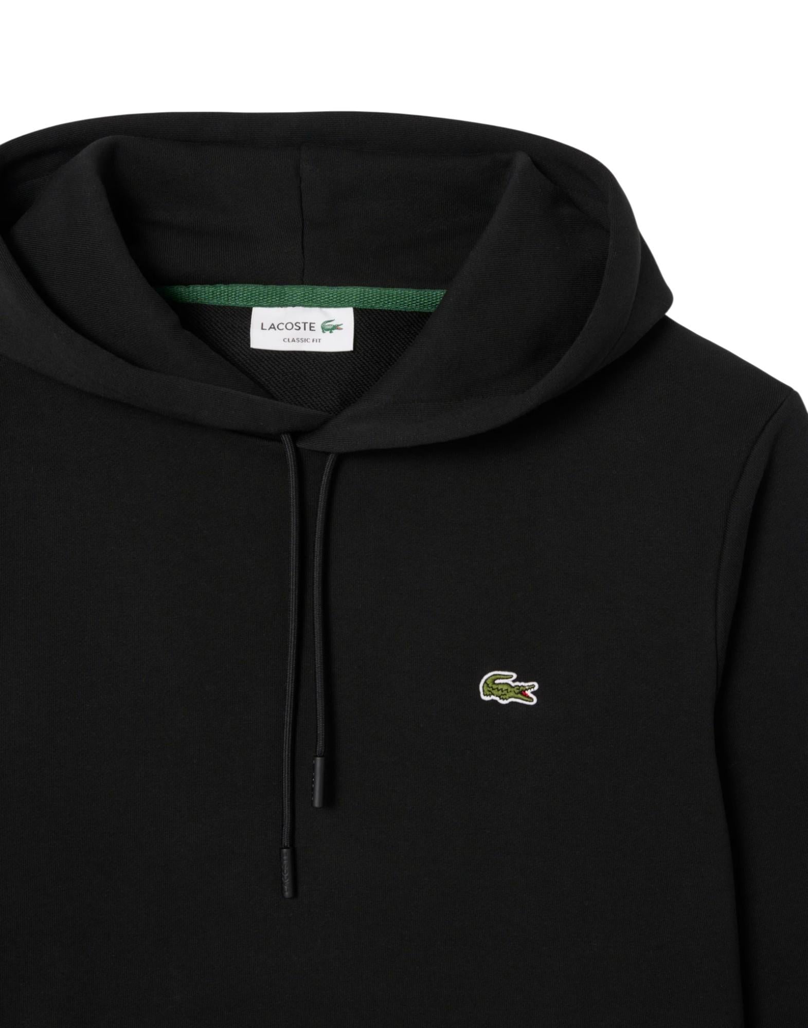 Lacoste - Felpa con cappuccio in cotone felpato - Nero