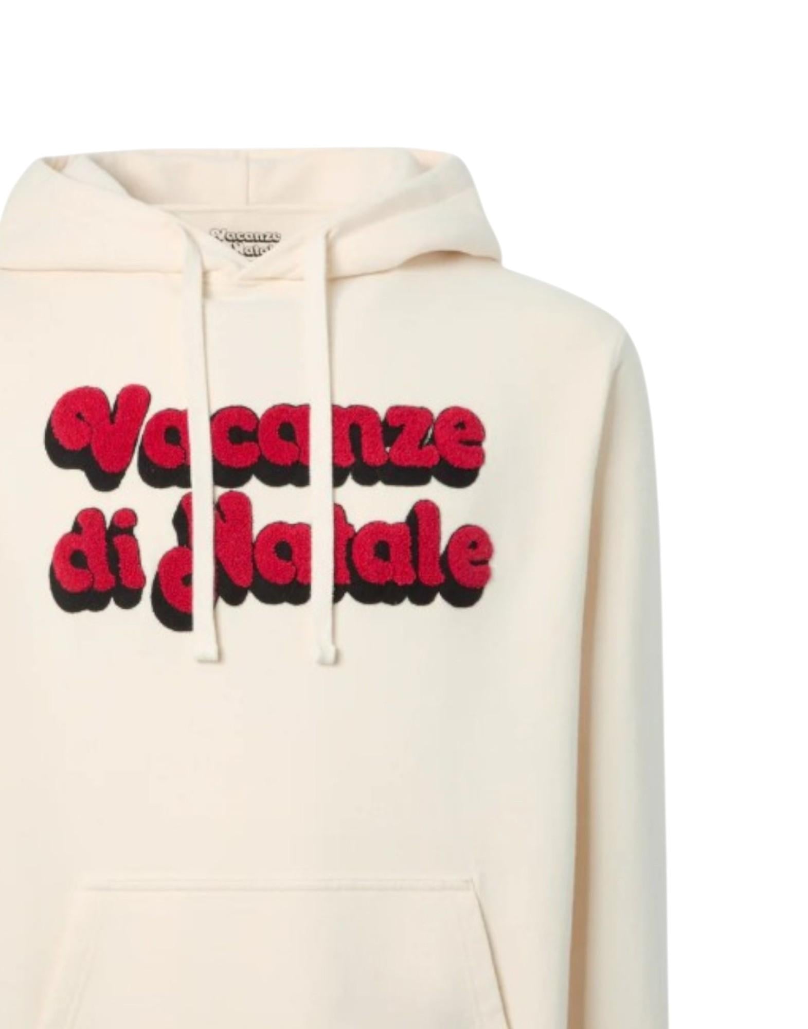 Realizzata in morbido cotone con interno spazzolato, unisce comfort e stile con un ricamo centrale in spugna che richiama l'iconica estetica anni '80. Il colore bianco crema e la vestibilità regolare rendono questo capo versatile e perfetto per la stagione invernale, sia in città che in montagna.