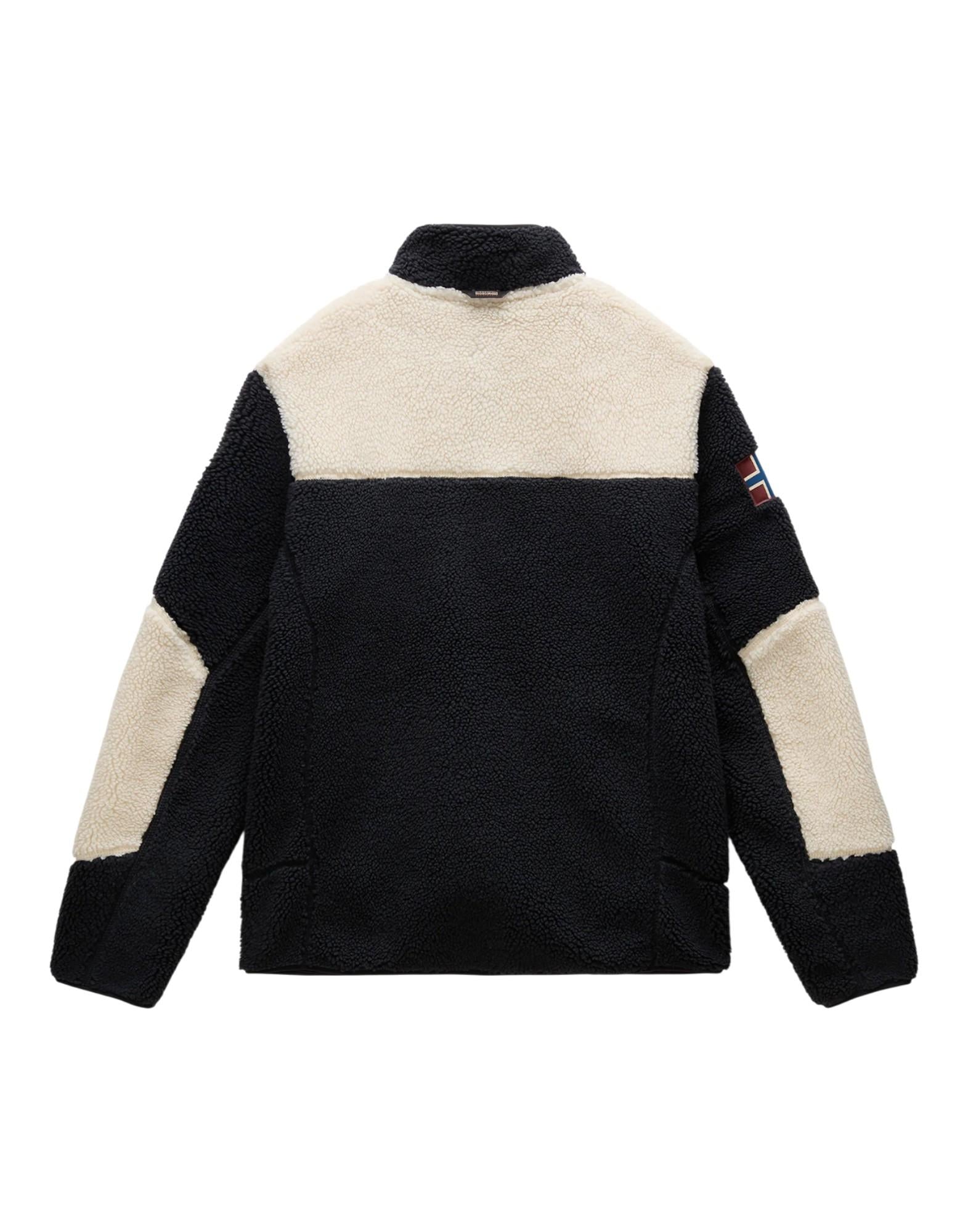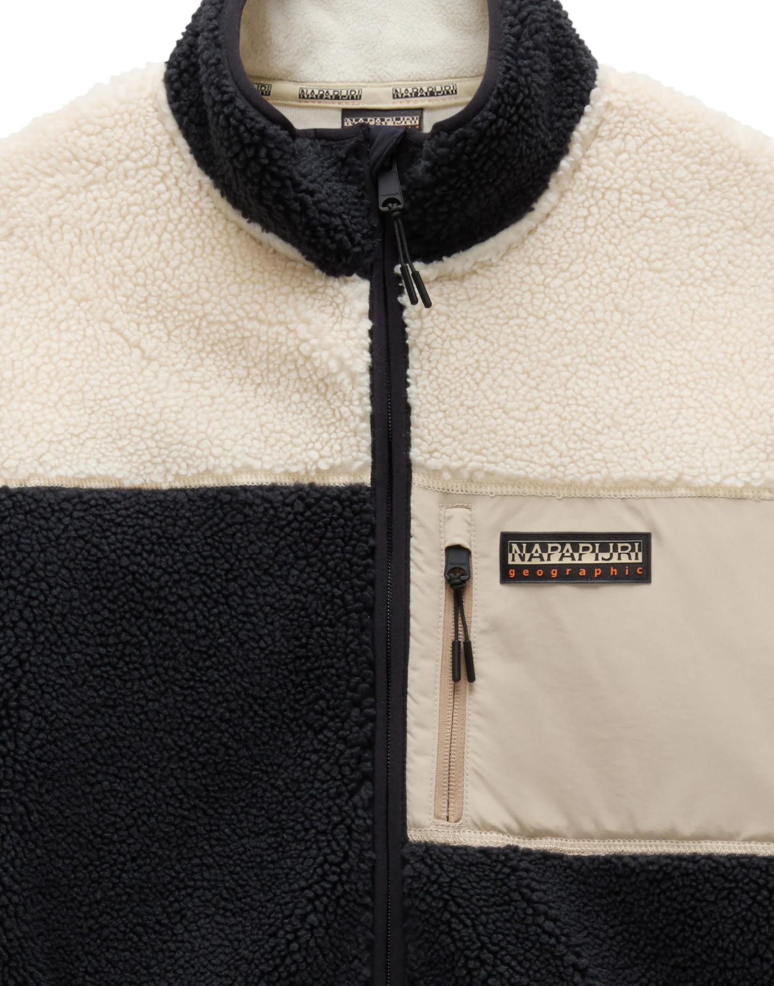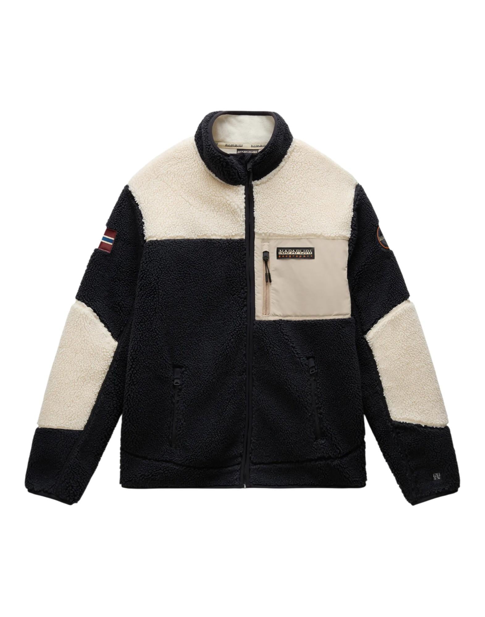 Giacca in pile dal taglio funzionale e contemporaneo, realizzata in morbido poliestere riciclato per garantire calore, comfort e durata nel tempo. Il tessuto principale, composto per l'80% da fibre riciclate, offre un'elevata traspirabilità e una mano soffice al tatto. Il modello presenta cappuccio fisso con sottogola, chiusura frontale con zip a tutta lunghezza e tasche laterali con chiusura a zip per una maggiore praticità. Le finiture elasticizzate su polsini e fondo migliorano la vestibilità, mentre i dettagli ricamati e il badge Napapijri completano il capo con un tocco autentico. Una giacca versatile, ideale per il tempo libero e per uno stile outdoor contemporaneo.