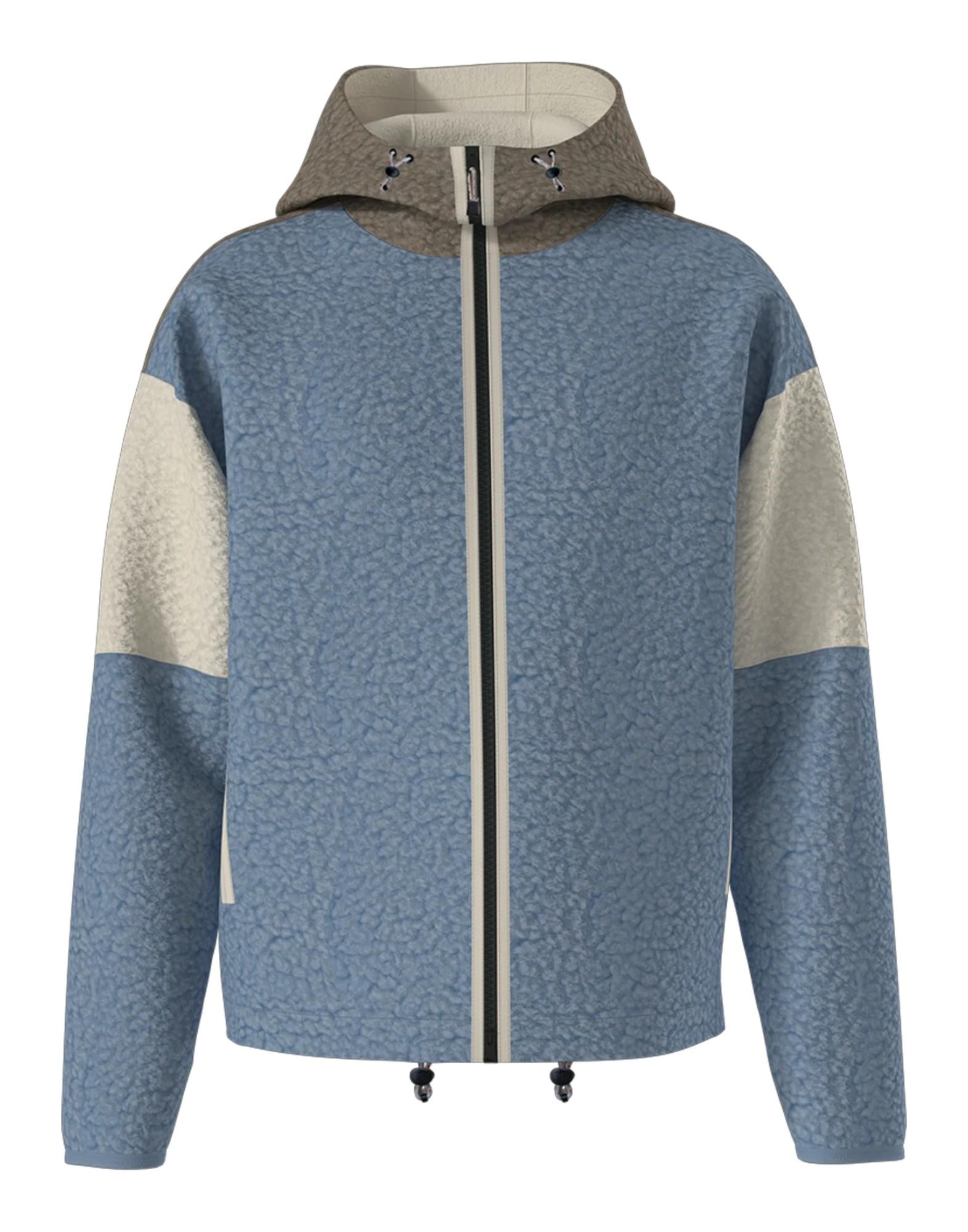 Giacca invernale dal design caldo e contemporaneo, realizzata in un morbido mix di lana e poliestere effetto fuzzy, che combina texture avvolgente e resistenza. La struttura presenta una linea diritta e una vestibilità comoda, ideale per affrontare la stagione fredda con comfort e stile. Il modello è dotato di cappuccio foderato con coulisse regolabile, chiusura frontale con zip bidirezionale e tasche laterali con chiusura a zip per la massima praticità. I dettagli a contrasto aggiungono profondità al design, rendendo la giacca perfetta per un look casual e disinvolto.