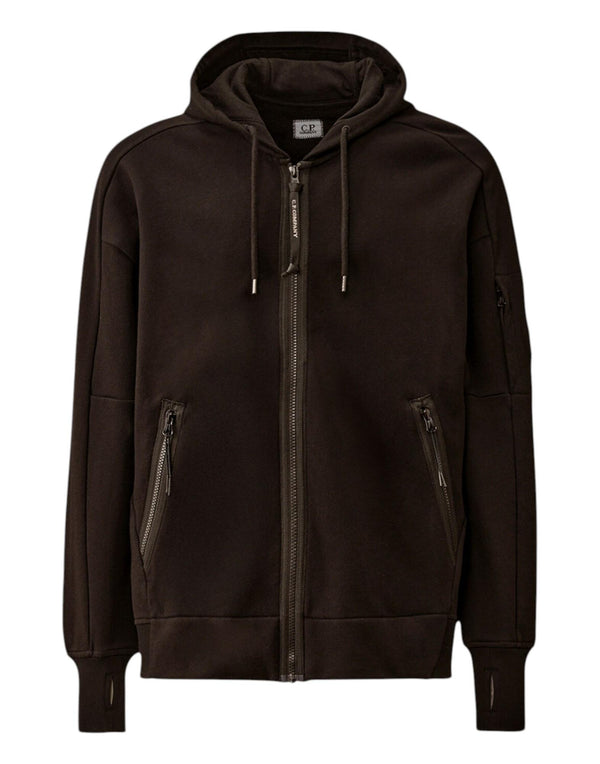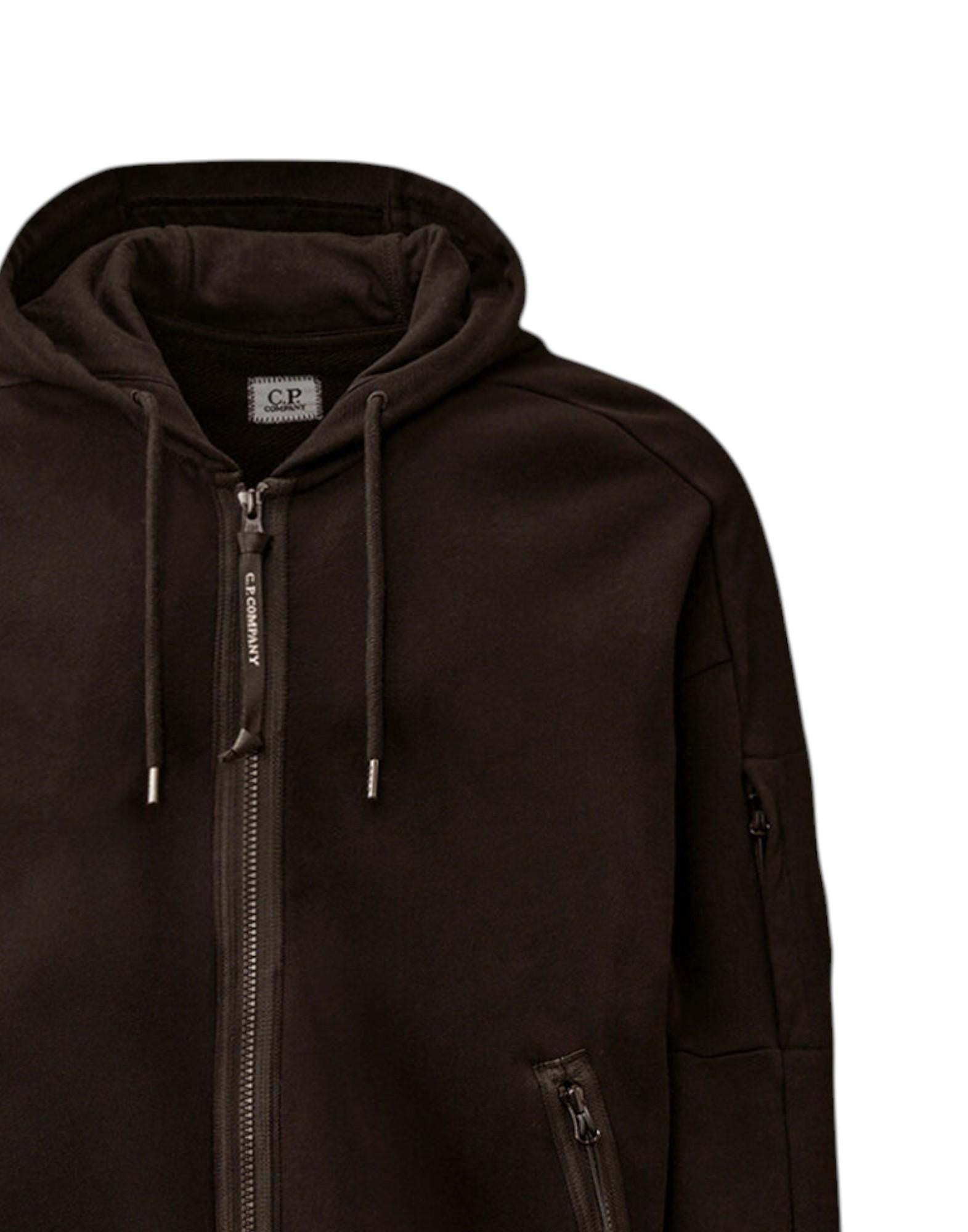 Felpa con cappuccio e chiusura full zip firmata C.P. Company, realizzata in Diagonal Raised Fleece, un tessuto in cotone spazzolato a trama diagonale di peso medio che garantisce comfort, morbidezza e durata nel tempo.