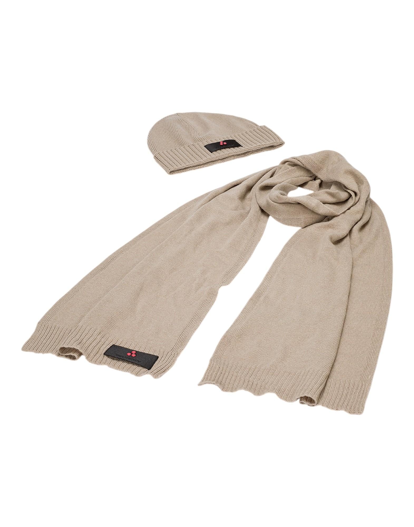 Kit composto da cuffia e sciarpa realizzati in pregiato tricot misto lana, caratterizzato da morbidezza e calore. La combinazione di fibre di qualità con una piccola percentuale di cachemire conferisce al set un tocco raffinato, rendendolo ideale per i mesi più freddi. Presentato in un elegante cofanetto brandizzato Peuterey, si presta perfettamente anche come idea regalo.