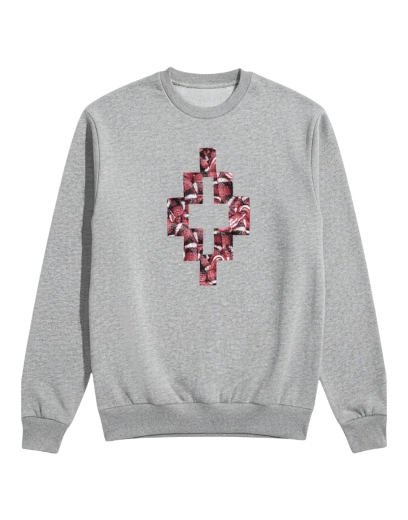 Marcelo Burlon County of Milan - Felpa Uomo Girocollo Cotone con Stampa Logo Lineout e Serpenti Grigio Melange